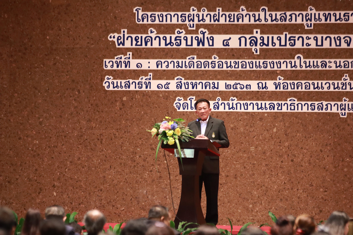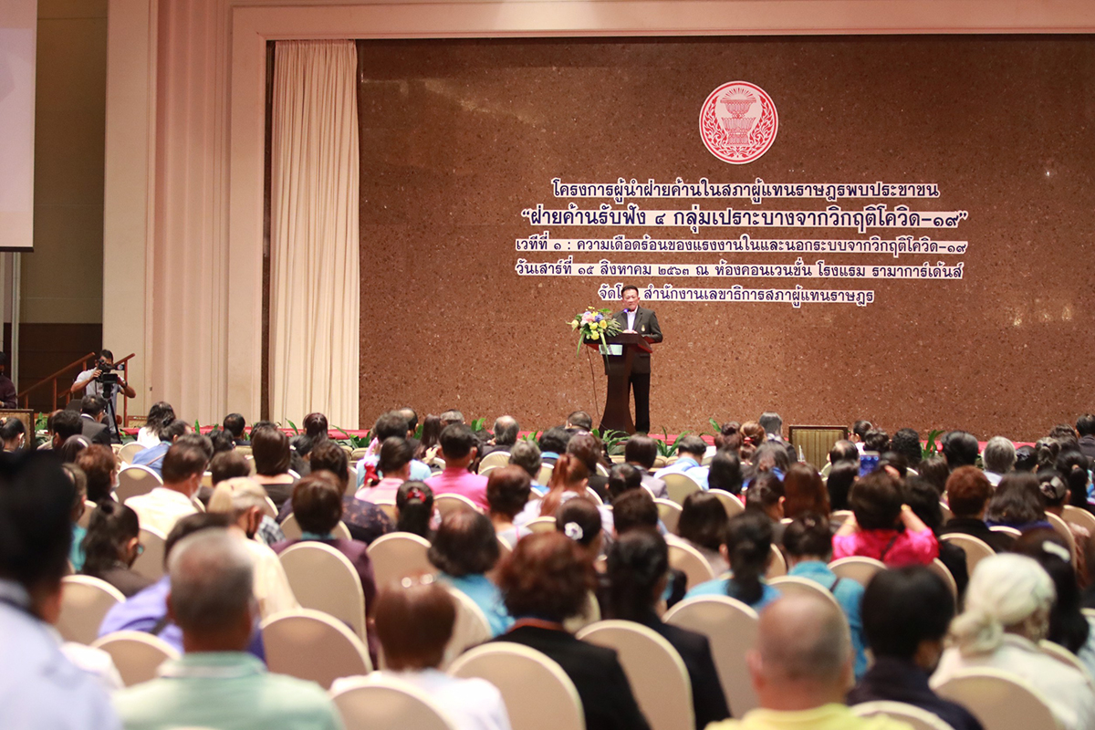 สำหรับในวันนี้จะเป็นเวทีรับฟังและแลกเปลี่ยนความคิดเห็นเกี่ยวกับ “ภาคแรงงาน” ที่ได้รับผลกระทบอย่างสาหัสจากโควิด-19 ซึ่งจะสะท้อนถึงความล้มเหลวของรัฐบาล 3 ประการในด้านแรงงาน ได้แก่