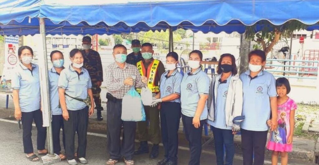 นายพีระเพชร ศิริกุล ส.ส.กาฬสินธุ์ พรรคเพื่อไทย มอบอาหารกลางวันให้กับเจ้าหน้าที่ตำรวจ อาสาสมัคร จิตอาสา อ.สมเด็จ จ.กาฬสินธุ์