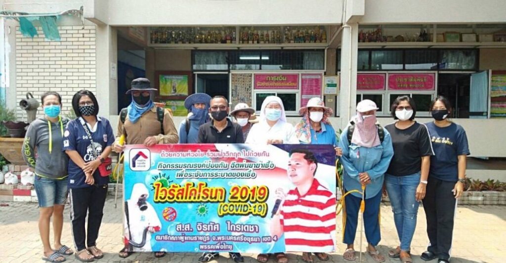 นายจิรทัศ ไกรเดชา ส.ส.พระนครศรีอยุธยา พรรคเพื่อไทย ลงพื้นที่มอบหน้ากากอนามัย เจลแอลกอฮอล์ และฉีดพ่นน้ำยาฆ่าเชื้อ ในพื้นที่เขต 4 จ.พระนครศรีอยุธยา