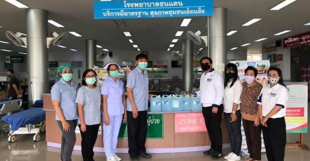 8 เมษายน 2563 นพ.สุรวิทย์ คนสมบูรณ์ ส.ส.ชัยภูมิ พรรคเพื่อไทย มอบหน้ากากอนามัยและเอทิลแอลกอฮอล์ให้แก่โรงพยาบาลชัยภูมิ