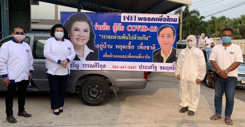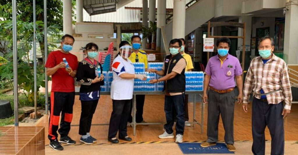 นางอนุรักษ์ บุญศล ส.ส.สกลนคร พรรคเพื่อไทย พร้อมทีมงาน ลงพื้นที่มอบเจลแอลกอฮอล์ให้กับเจ้าหน้าที่ผู้ปฏิบัติงาน บุคลากรทางการแพทย์ และประชาชนทั่วไป