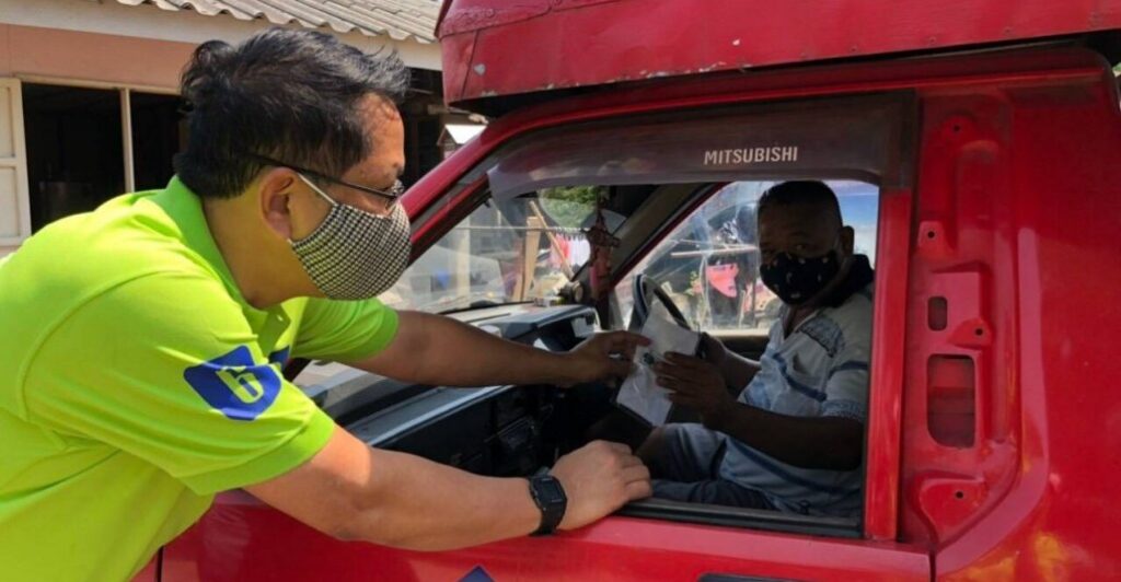 นายจิรายุ ห่วงทรัพย์ ส.ส. กทม. พรรคเพื่อไทย ลงพื้นที่รณรงค์ลดการแพร่ระบาดโควิด-19 โดยการพ่นฆ่าเชื้อรถโดยสารสาธารณะ พร้อมแจกหน้ากากอนามัย