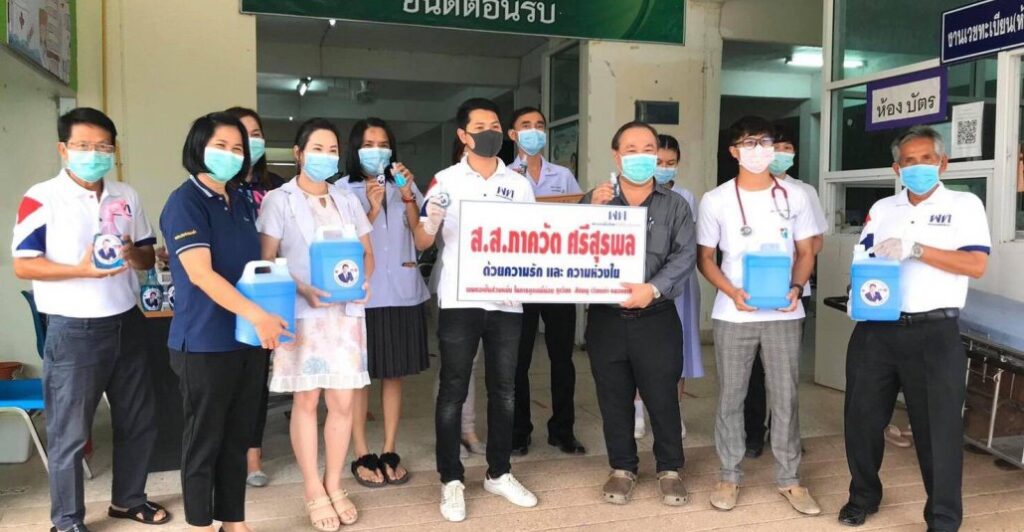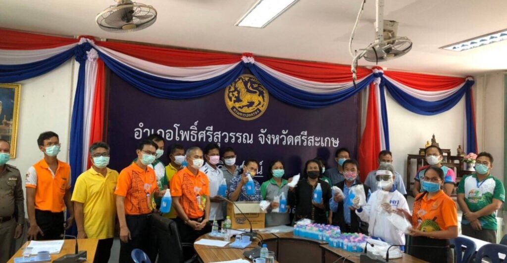 5 เมษายน 2563 นางผ่องศรี แซ่จึง ส.ส.ศรีสะเกษ พรรคเพื่อไทย มอบประธาน อสม. และประธานสตรีบึงบูรพ์ เพื่อเป็นตัวแทนแจกเจลแอลกอฮอล์ให้กับพ่อค้าแม่ค้าในตลาด