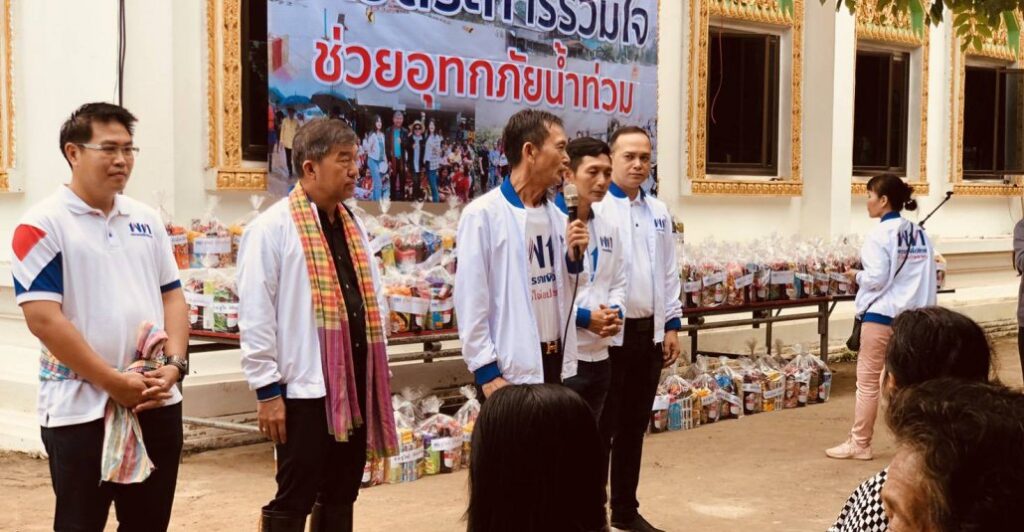 ดร.อนุรักษ์ ตั้งปณิธานนท์ ส.ส.จังหวัดมุกดาหาร เขต 1 พรรคเพื่อไทย พร้อมคณะ มอบถุงยังชีพแก่ผู้ประสบภัยน้ำท่วม