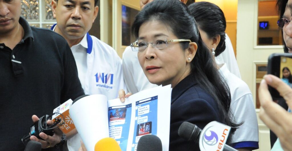 คุณหญิงสุดารัตน์ เกยุราพันธ์ุ ประธานยุทธศาสตร์การเลือกตั้ง พรรคเพื่อไทย แถลงข่าว กรณีคลิปที่แพร่กล่าวหาใส่ร้ายในออนไลน์ แจ้งความดําเนินคดีตามกฎหมาย