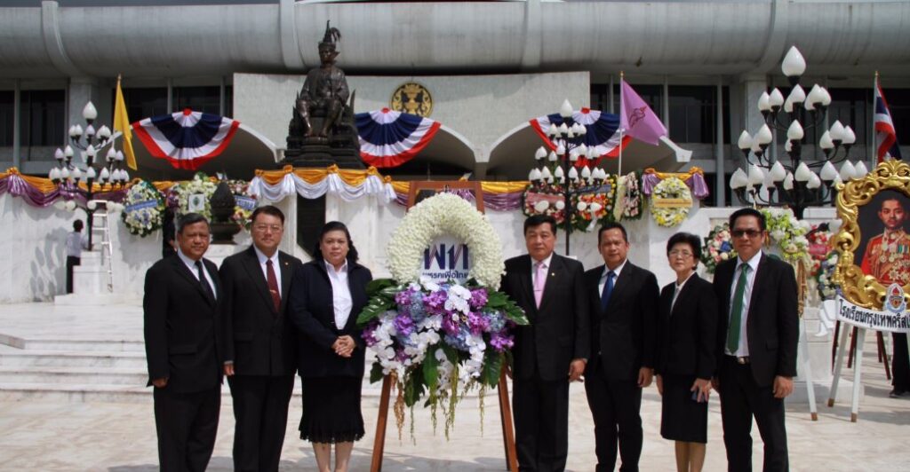 พรรคเพื่อไทย วางพวงมาลาถวายราชสักการะพระบรมราชานุสาวรีย์ พระบาทสมเด็จพระปกเกล้าเจ้าอยู่หัว ที่ด้านหน้าอาคารรัฐสภา