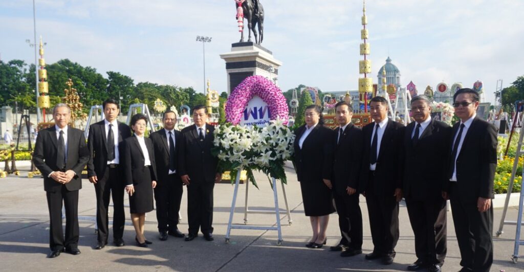พรรคเพื่อไทยวางพวงมาลา รำลึกพระมหากรุณาธิคุณ รัชกาลที่ 5 เนื่องในวันปิยมหาราช. ณ ลานพระราชวังดุสิต