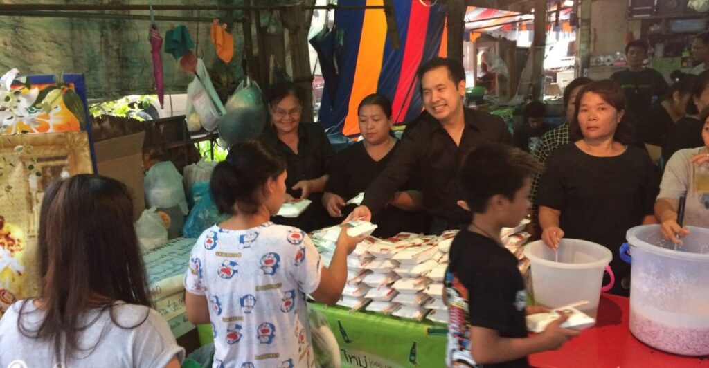 ร.ต.อ.วัฒนรักษ์ สุรนาทยุทธ์ งานแจกอาหารแก่ประชาชน ร่วมพิธีบำเพ็ญกุศลครบ 1 ปี เสด็จสวรรคต พระบาทสมเด็จพระปรมินทรมหาภูมิพลอดุลยเดช ณ วัดทองสุทธาราม