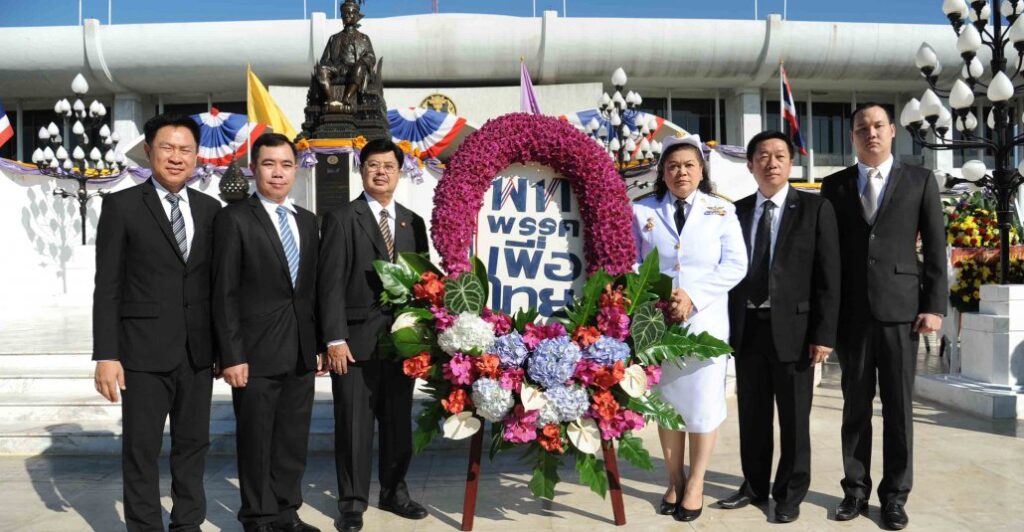 พรรคเพื่อไทยวางพวงมาลาถวายบังคมพระบรมราชานุสาวรีย์ พระบาทสมเด็จพระปกเกล้าเจ้าอยู่หัว รัฐสภา
