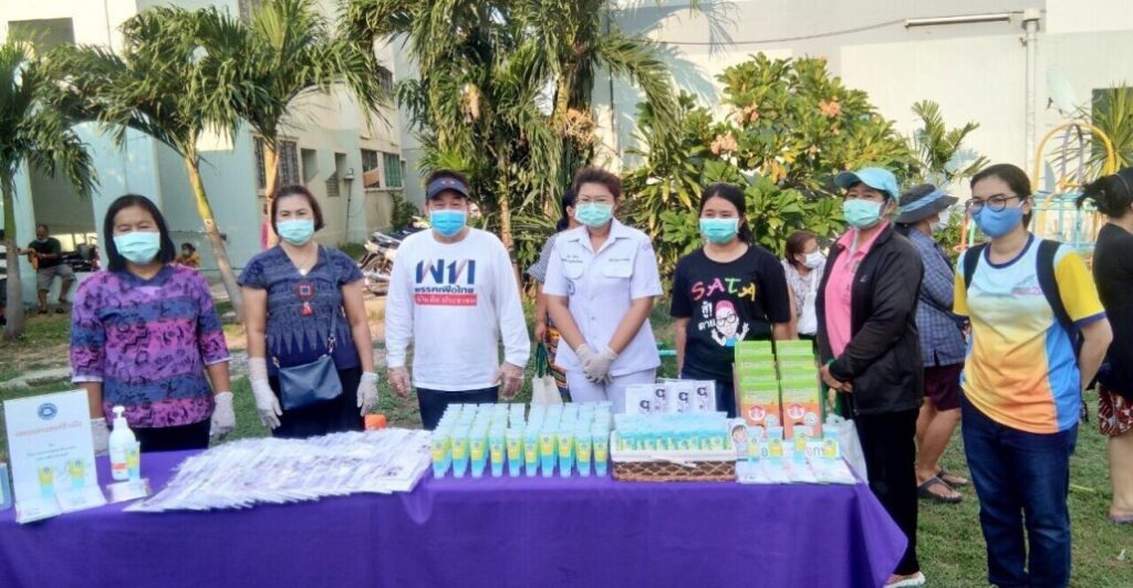 นางสาวรินทิรา วัฒนวงษ์ภิญโญ , ร.ต.ท.ธงชัย นกหงษ์ , ดร.นิศามาศ เลาหรัตนหิรัญ และนายษรกฤต ผลลูกอินทร์ และสมาชิกกลุ่มเพื่อไทยพลัส มอบชุด PPE เจลแอลกฮอล์