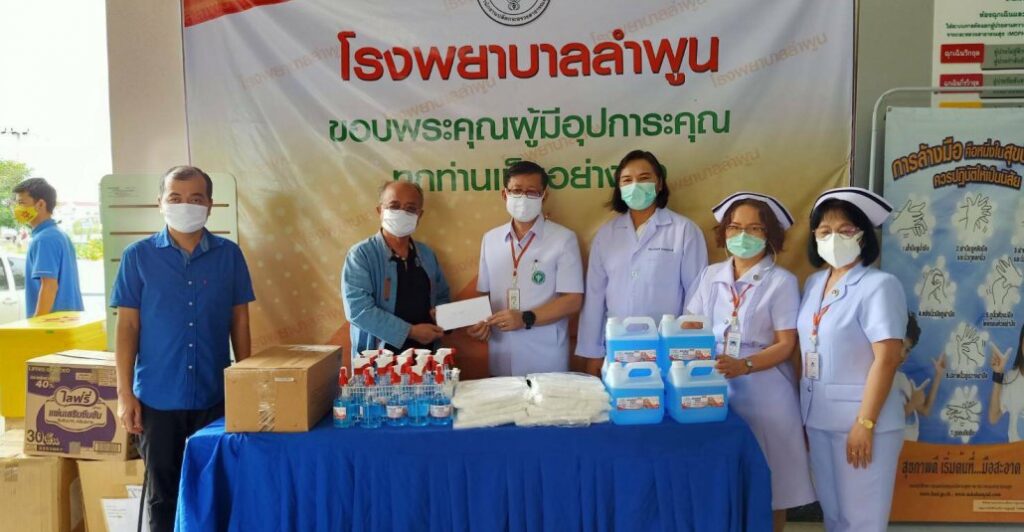 นายสงวน พงษ์มณี ส.ส.ลำพูน พรรคเพื่อไทย มอบชุด PPE และแอลกอฮอล์ฆ่าเชื้อให้แก่โรงพยาบาลลำพูน