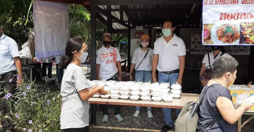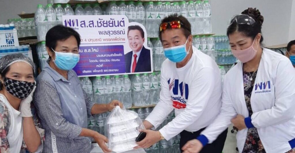 นายชัยยันต์ ผลสุวรรณ์ ส.ส.ปทุมธานี พรรคเพื่อไทย แจกอาหารและน้ำดื่มให้กับพี่น้องประชาชน บริเวณหน้าสำนักงานพรรคเพื่อไทย ปทุมธานี , ตลาดนานาเพลส