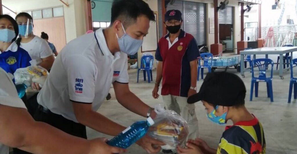 นายชัยยันต์ ผลสุวรรณ์ ส.ส.ปทุมธานี พรรคเพื่อไทย ลงพื้นที่แจกอาหาร ผลไม้ หน้ากากอนามัย และเจลแอลกอฮอล์ ชุมชนเคหะเอื้ออาทร