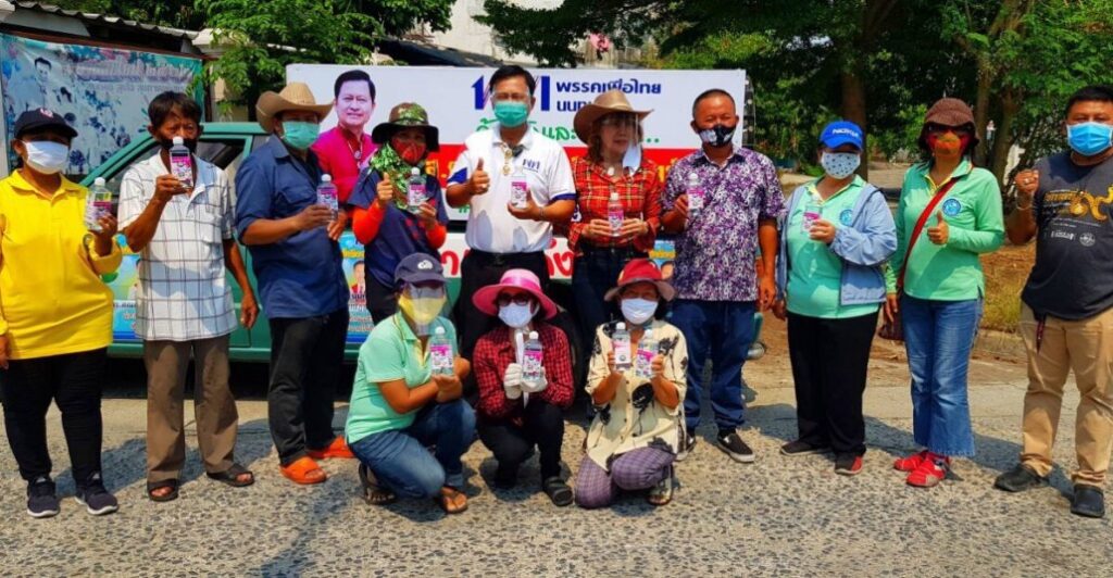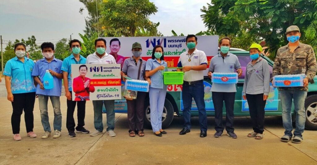 นายภณณัฏฐ์ ศรีอินทร์สุทธิ์ ส.ส.นนทบุรี พรรคเพื่อไทย มอบเจลแอลกอฮอล์สำหรับฆ่าเชื้อโรคโควิด-19 ในพื้นที่ ต.หนองเพรางาย อ.ไทรน้อย จ.นนทบุรี