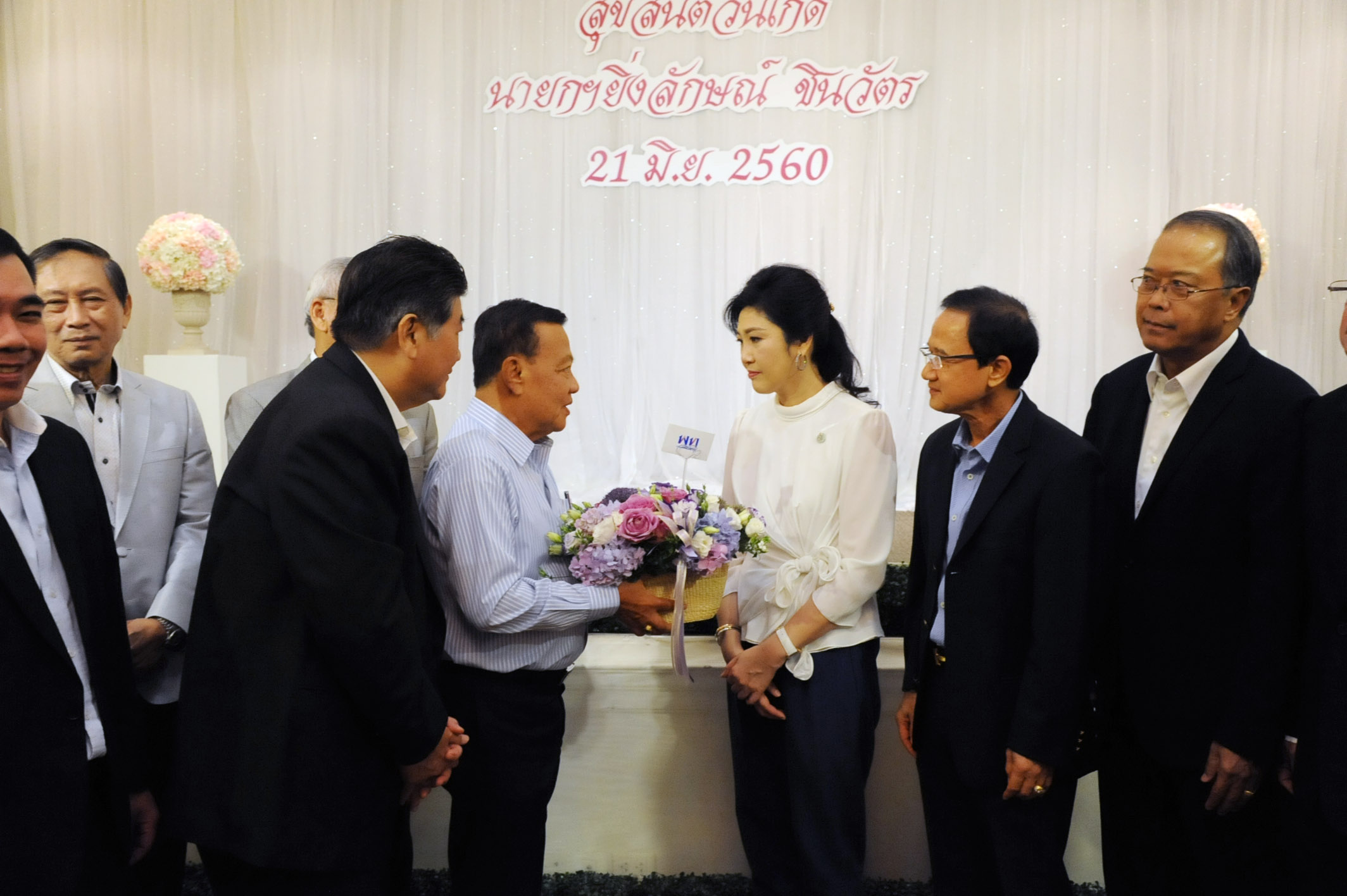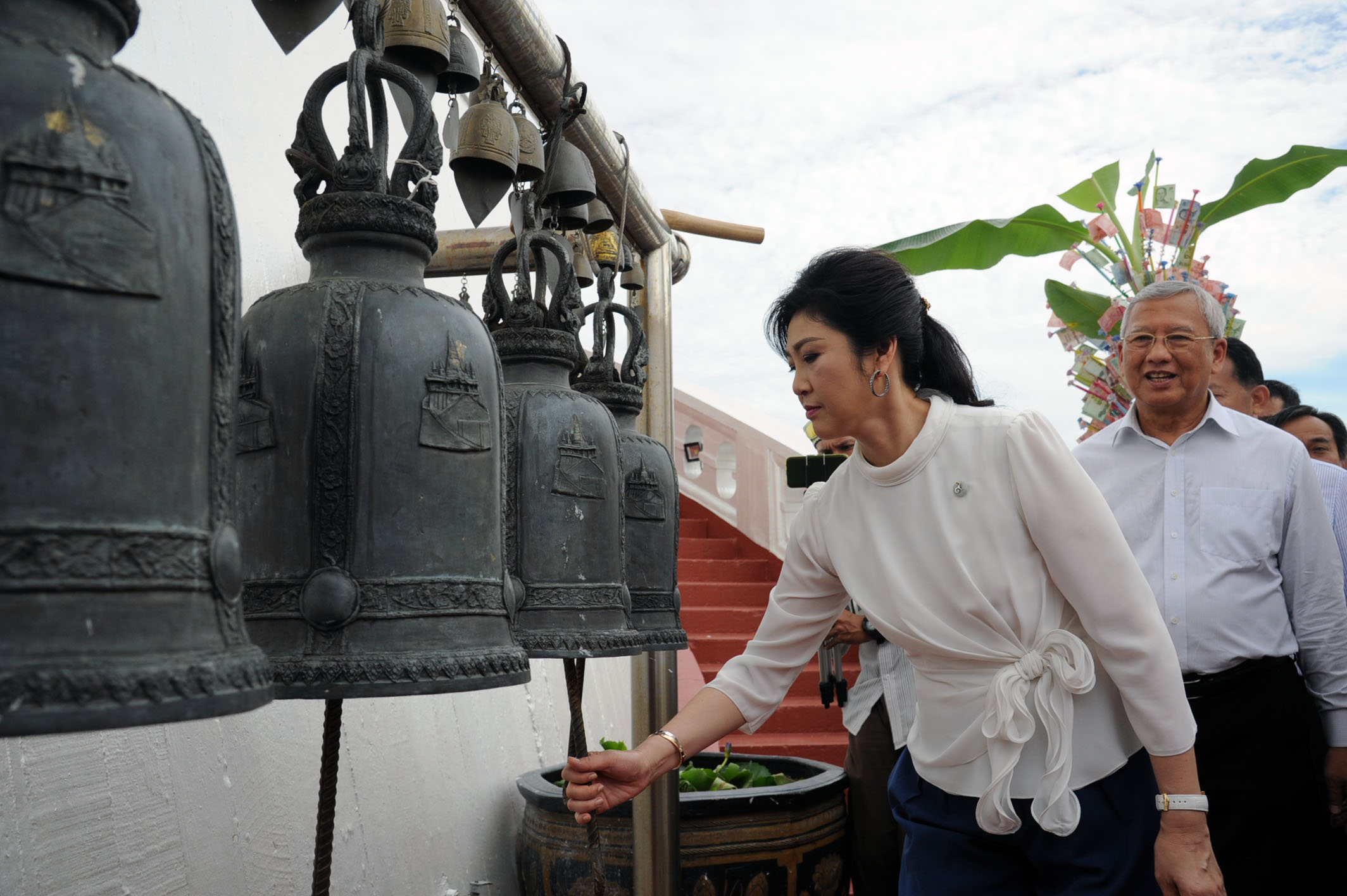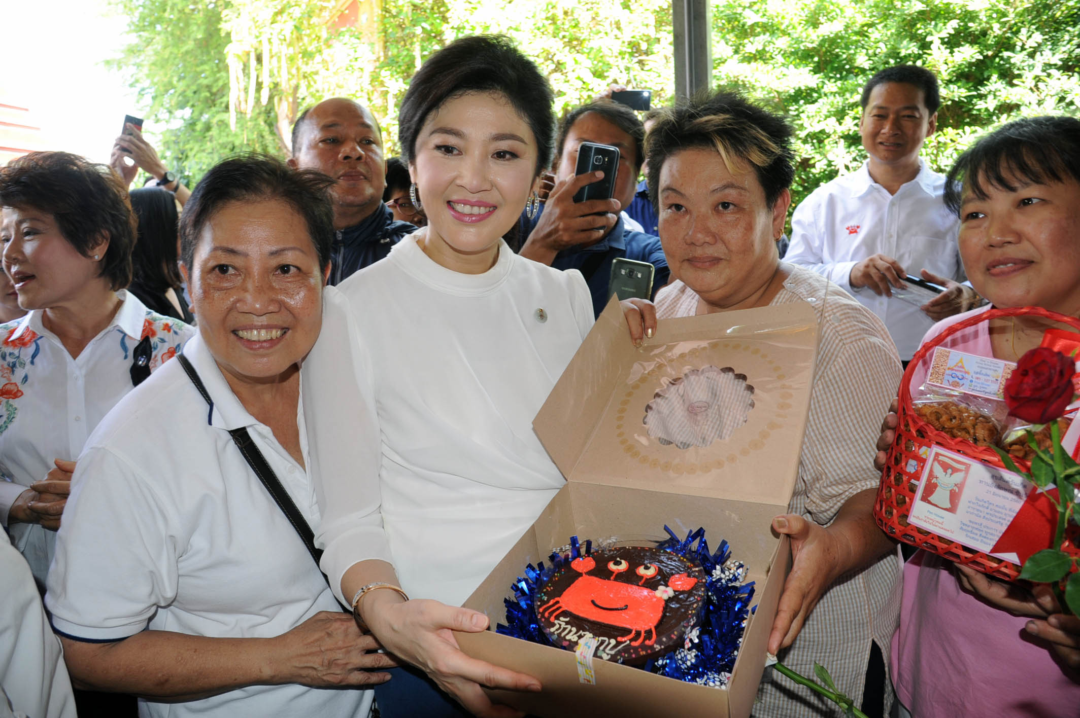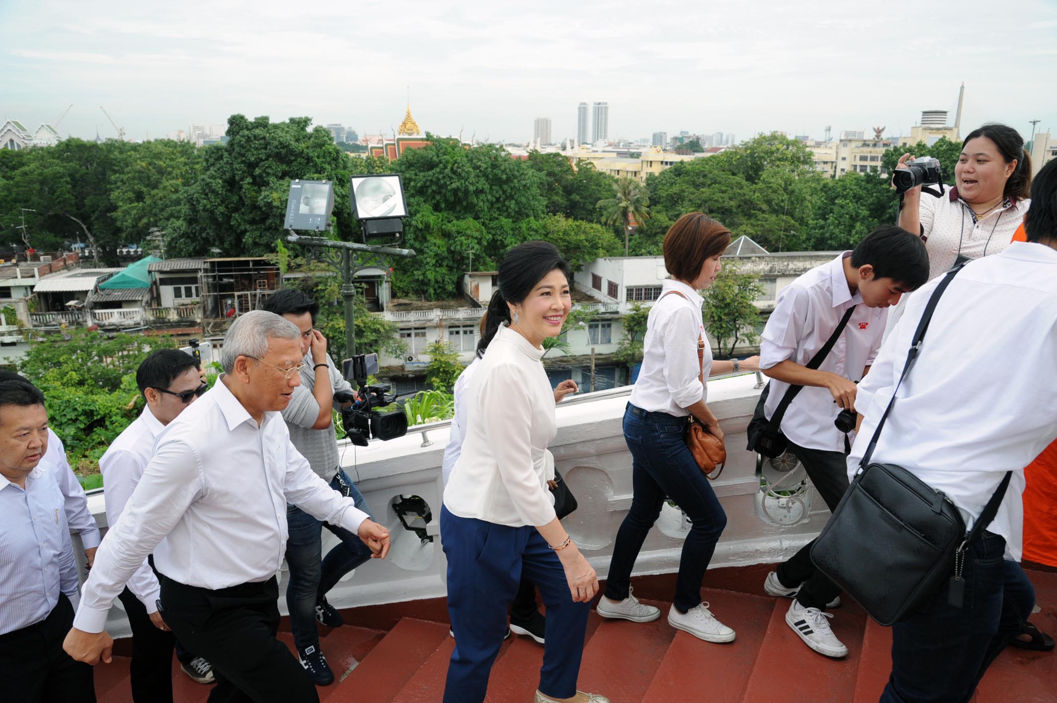 นางสาวยิ่งลักษณ์ ชินวัตร อดีตนายกรัฐมนตรี ทำบุญเนื่องในวันคล้ายวันเกิด ครบรอบ 50 ปี โดยการถวายสังฆทานห่มผ้าองค์พระธาตุ พร้อมถวายผ้าป่า ที่วัดสระเกศ