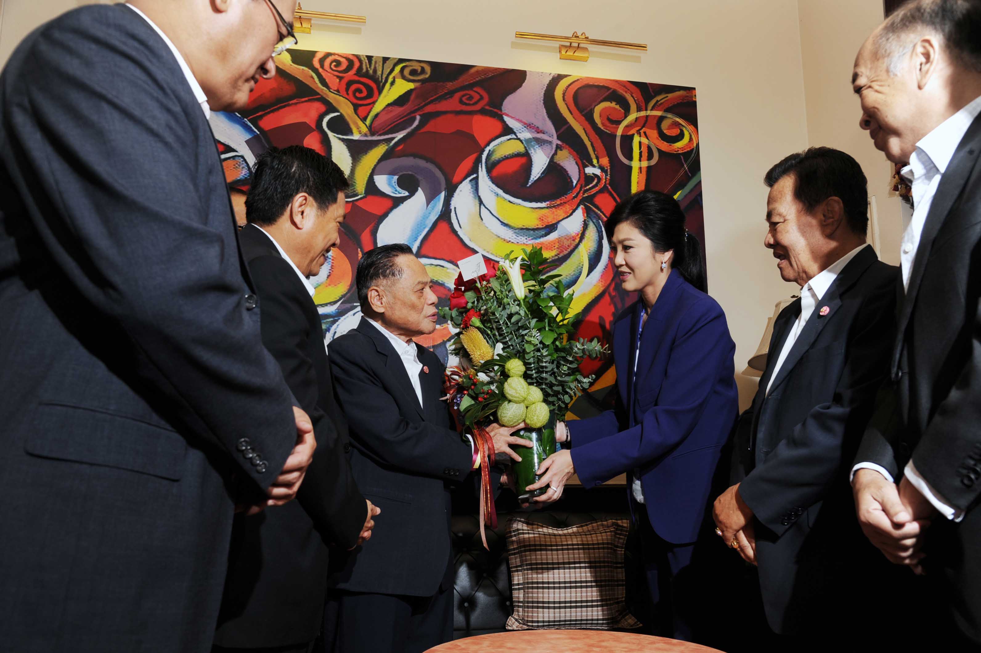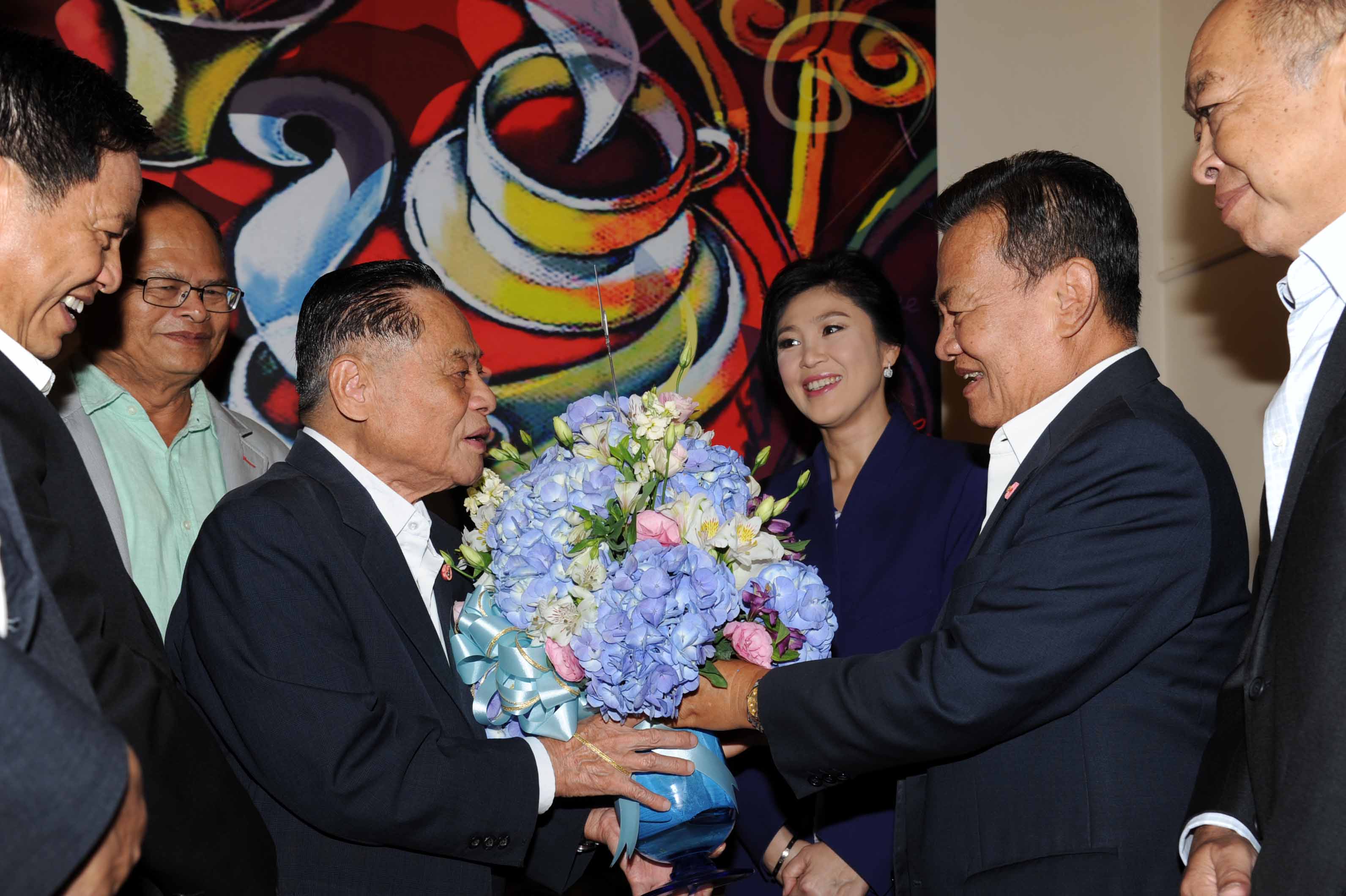 น.ส.ยิ่งลักษณ์ ชินวัตร อดีตนายกรัฐมนตรี เป็นผู้แทน พ.ต.ท.ดร.ทักษิณ ชินวัตร และนายสมชาย วงศ์สวัสดิ์ อดีตนายกรัฐมนตรี และผู้บริหารพรรคเพื่อไทย มอบแจกันดอกไม้อวยพรวันคล้ายวันเกิด นายบรรหาร ศิลปอาชา อดีตนายกรัฐมตรี ณ พรรคชาติไทยพัฒนา