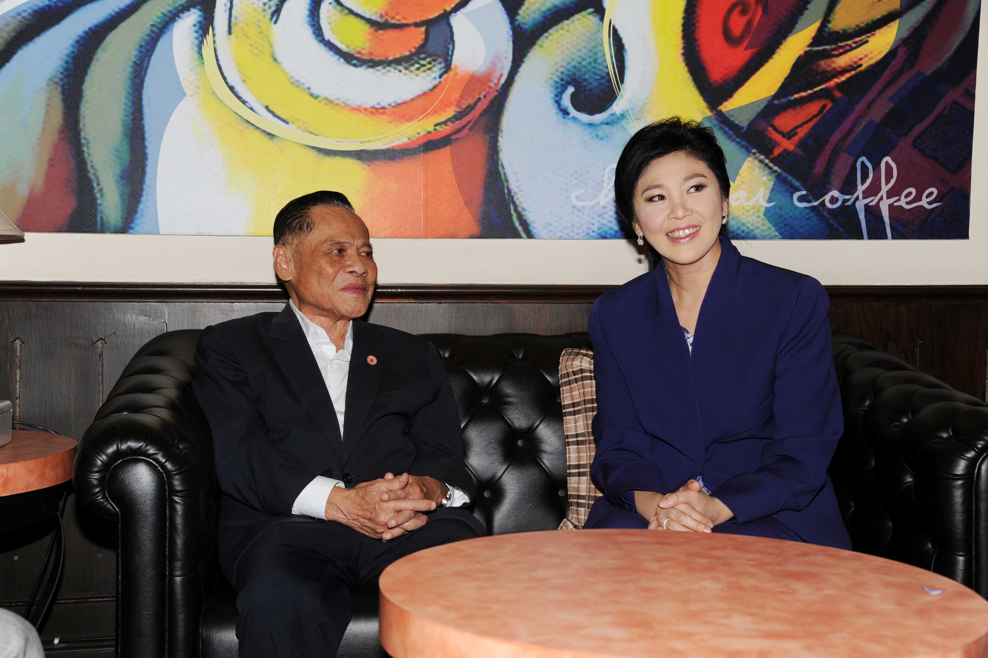 น.ส.ยิ่งลักษณ์ ชินวัตร อดีตนายกรัฐมนตรี และผู้บริหารพรรคเพื่อไทย เข้าอวยพรวันคล้ายวันเกิด นายบรรหาร ศิลปอาชา ณ พรรคชาติไทยพัฒนา