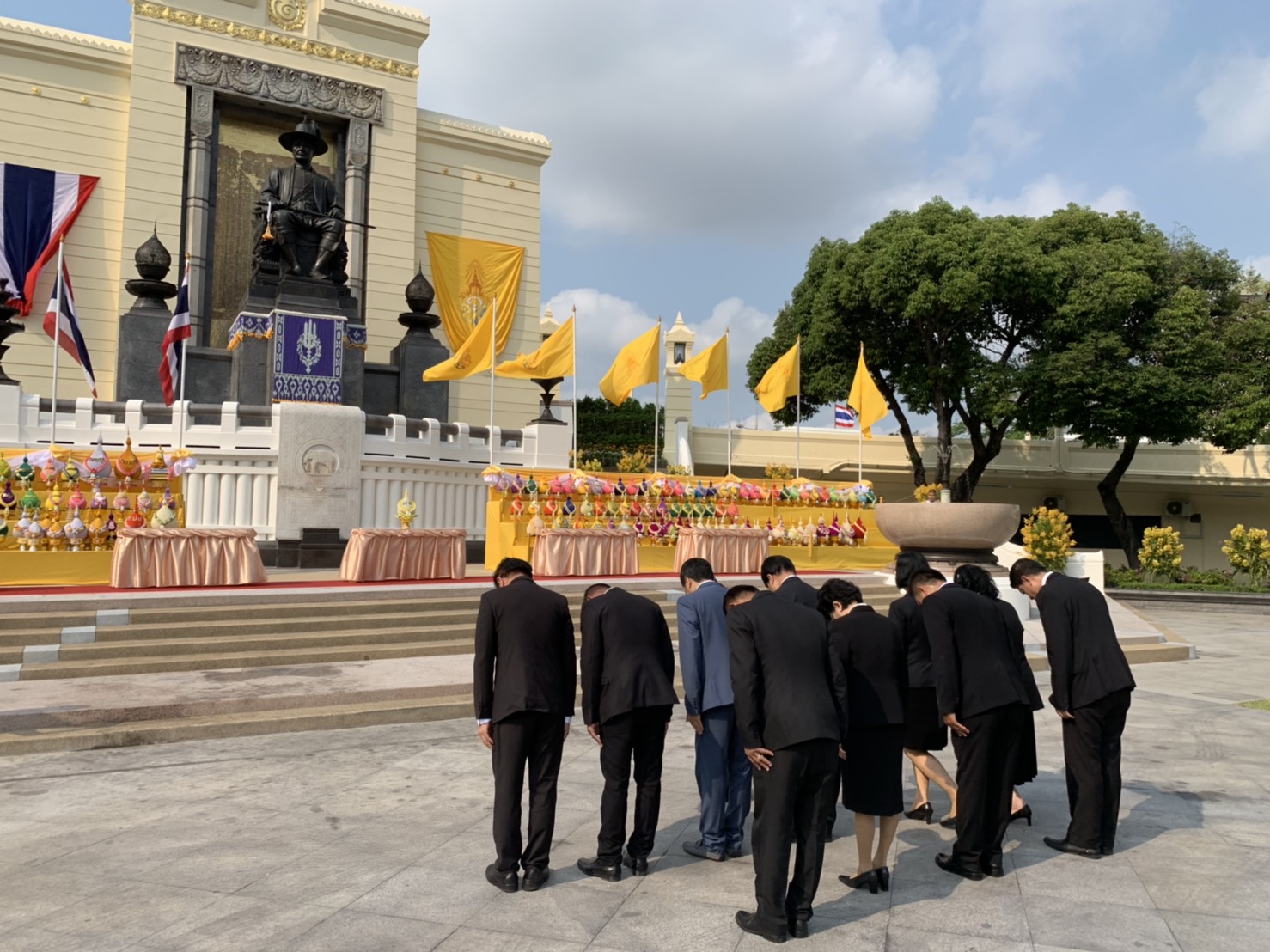 คณะผู้บริหารพรรคเพื่อไทย วางพานพุ่มดอกไม้ถวายราชสักการะ พระบรมราชานุสาวรีย์พระบาทสมเด็จพระพุทธยอดฟ้าจุฬาโลกมหาราช เนื่องในวันจักรี เพื่อระลึกถึงพระมหากรุณาธิคุณ