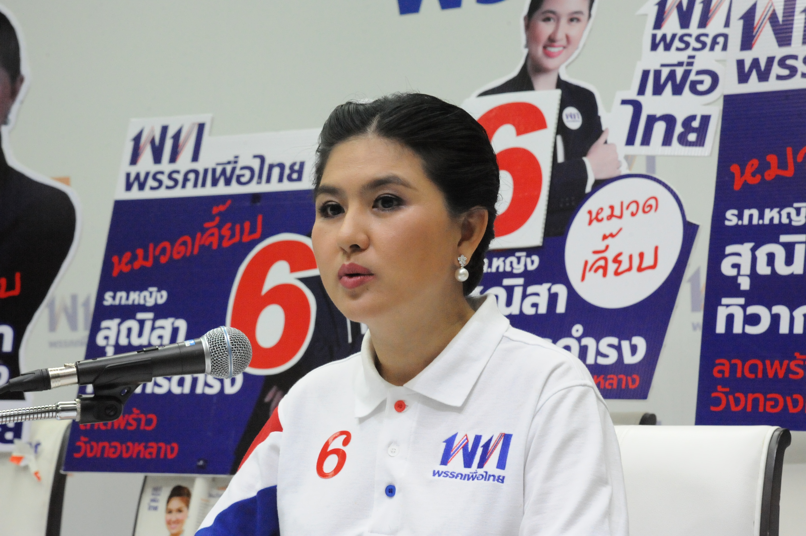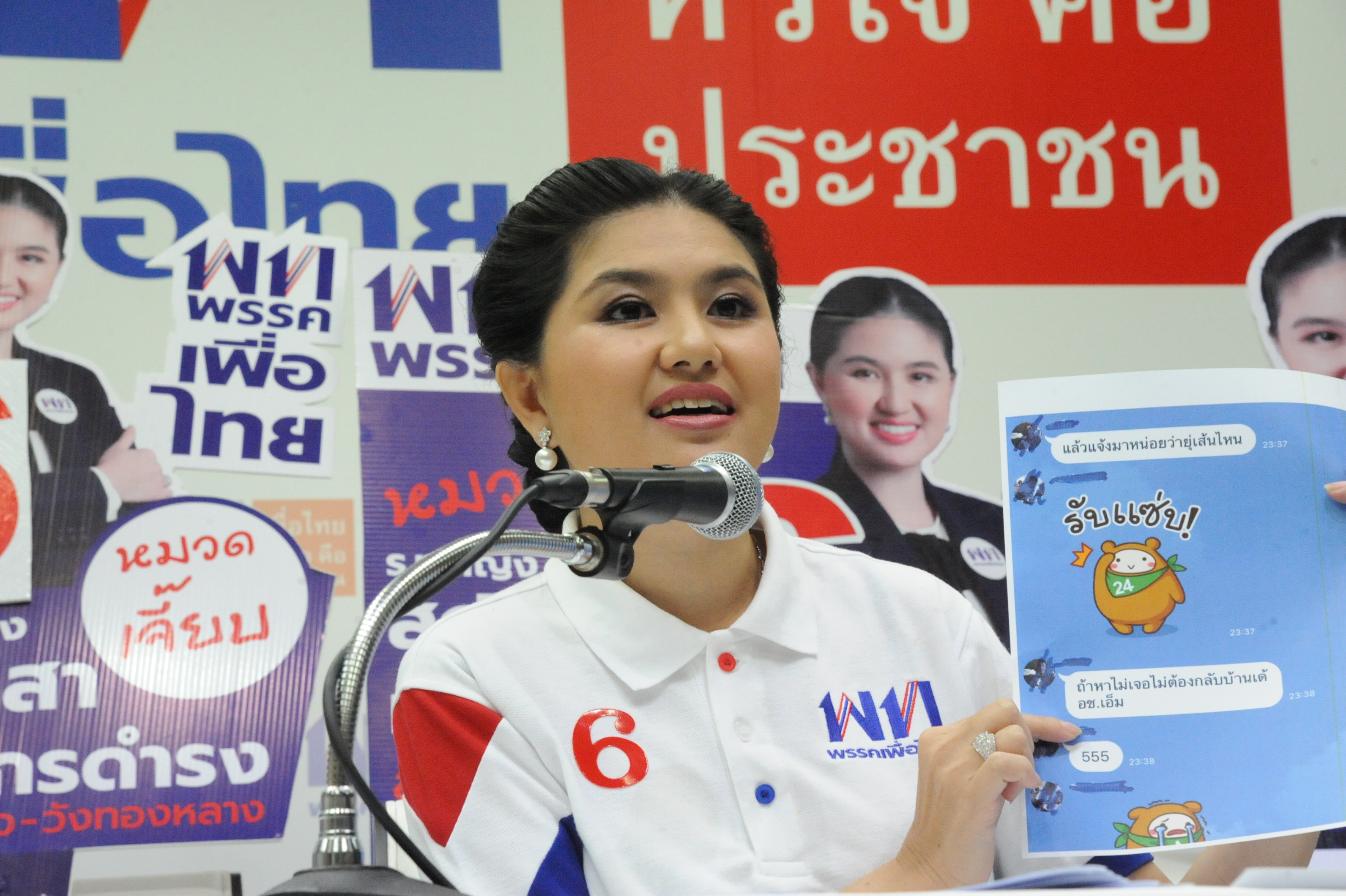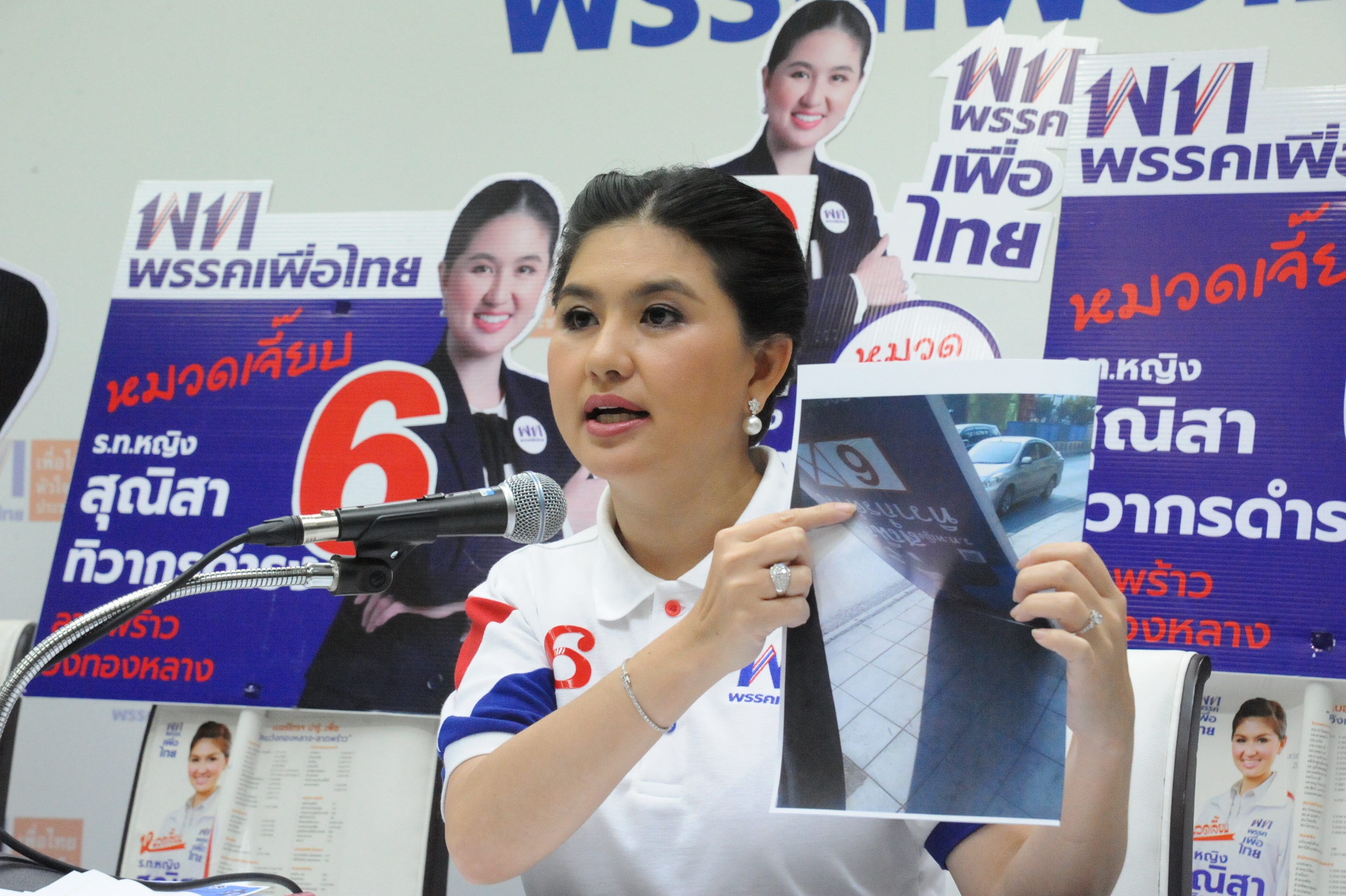 ร.ท.หญิง สุณิสา ทิวากรดํารง ผู้สมัครส.ส.เขตลาดพร้าว วังทองหลาง พรรคเพื่อไทย แถลงข่าว ถูกโจมตีกลั่นแกล้งการติดป้ายหาเสียงในพื้นที่ ณ พรรคเพื่อไทย