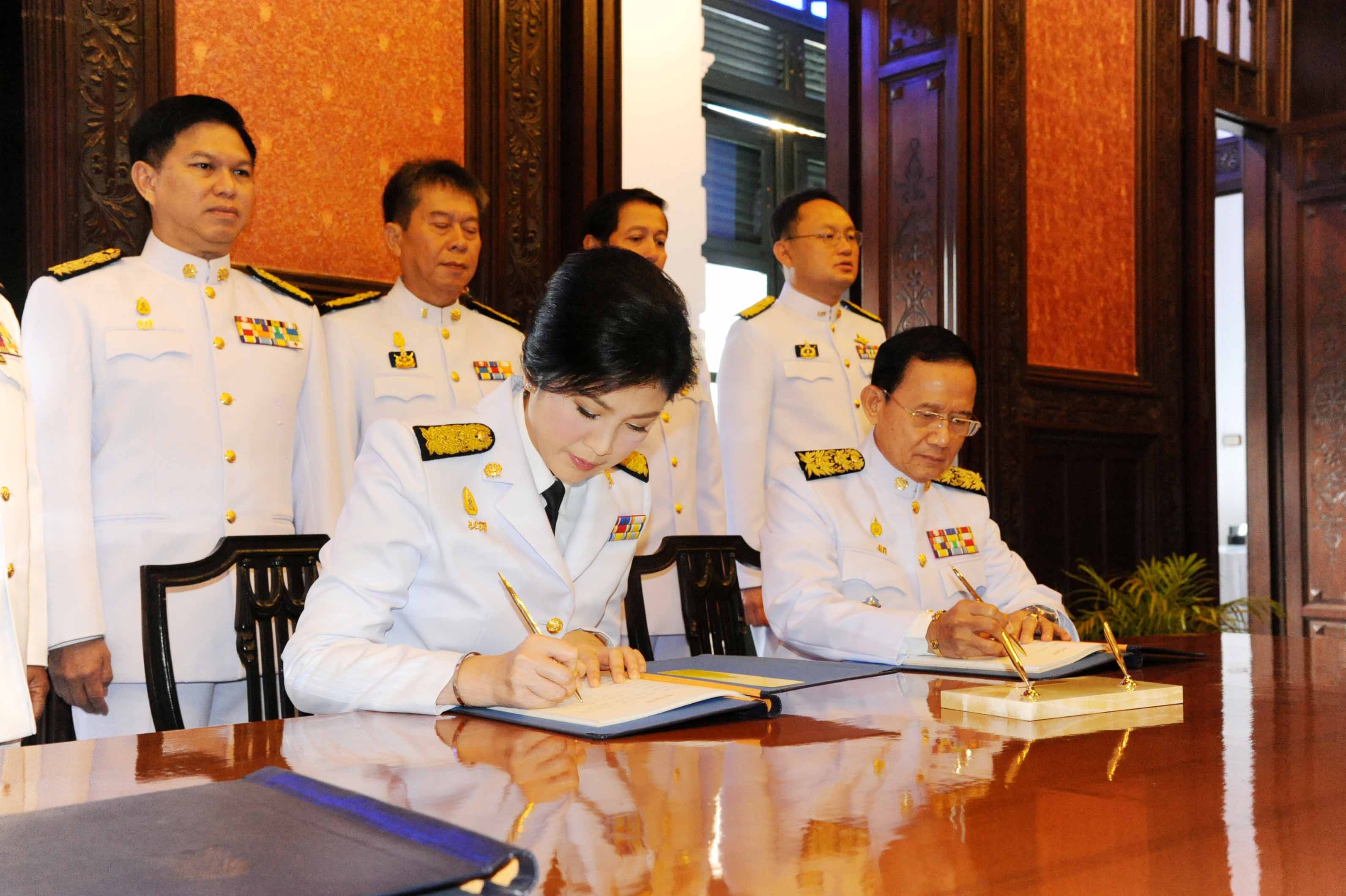 นาย สมชาย วงศ์สวัสดิ์ อดีตนายกรัฐมนตรี,น.ส.ยิ่งลักษณ์ ชินวัตร อดีตนายกรัฐมนตรี ลงนามถวายพระพร พระบาทสมเด็จพระเจ้าอยู่หัว ณ ศาลาสหทัยสมาคม