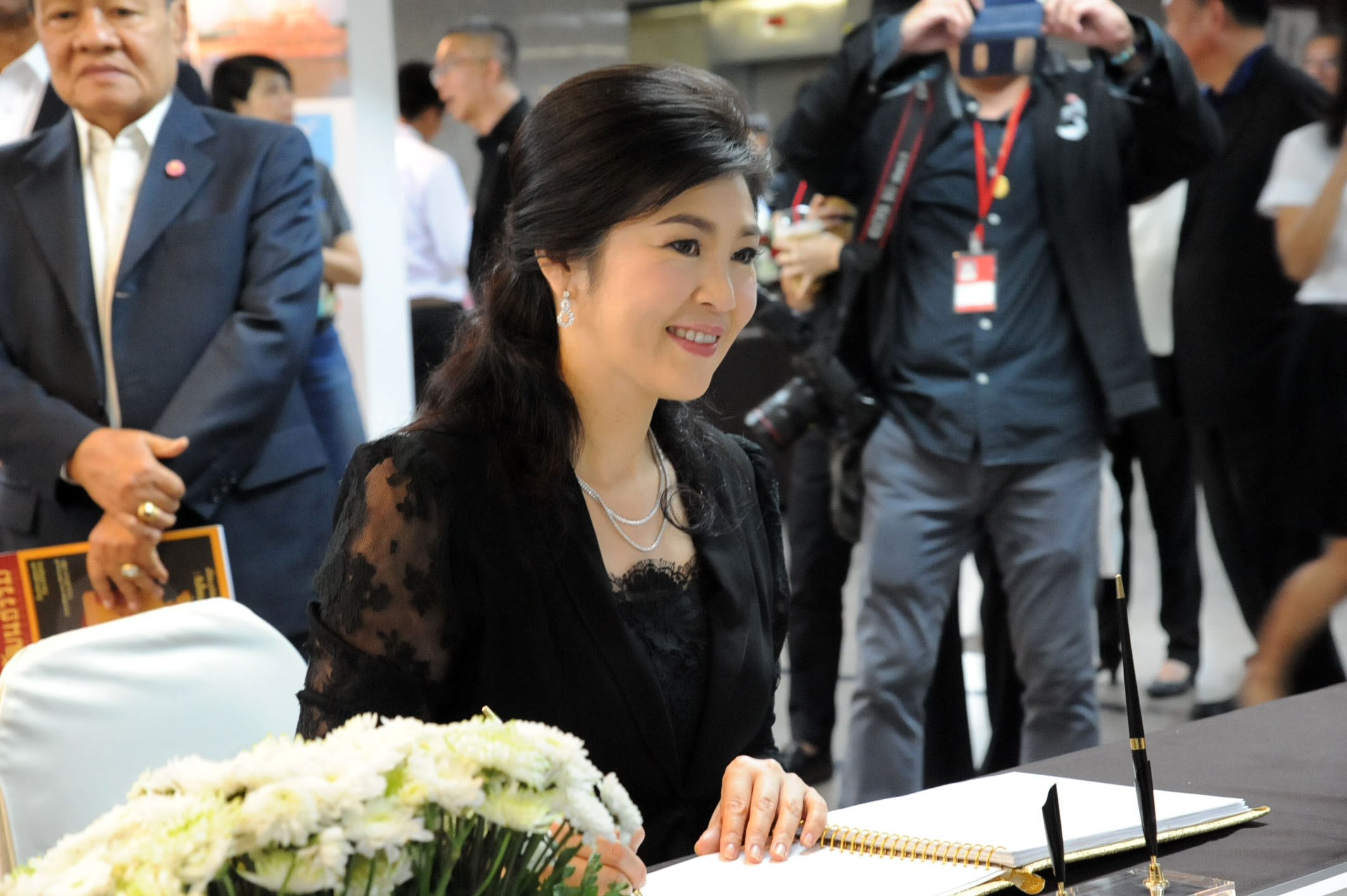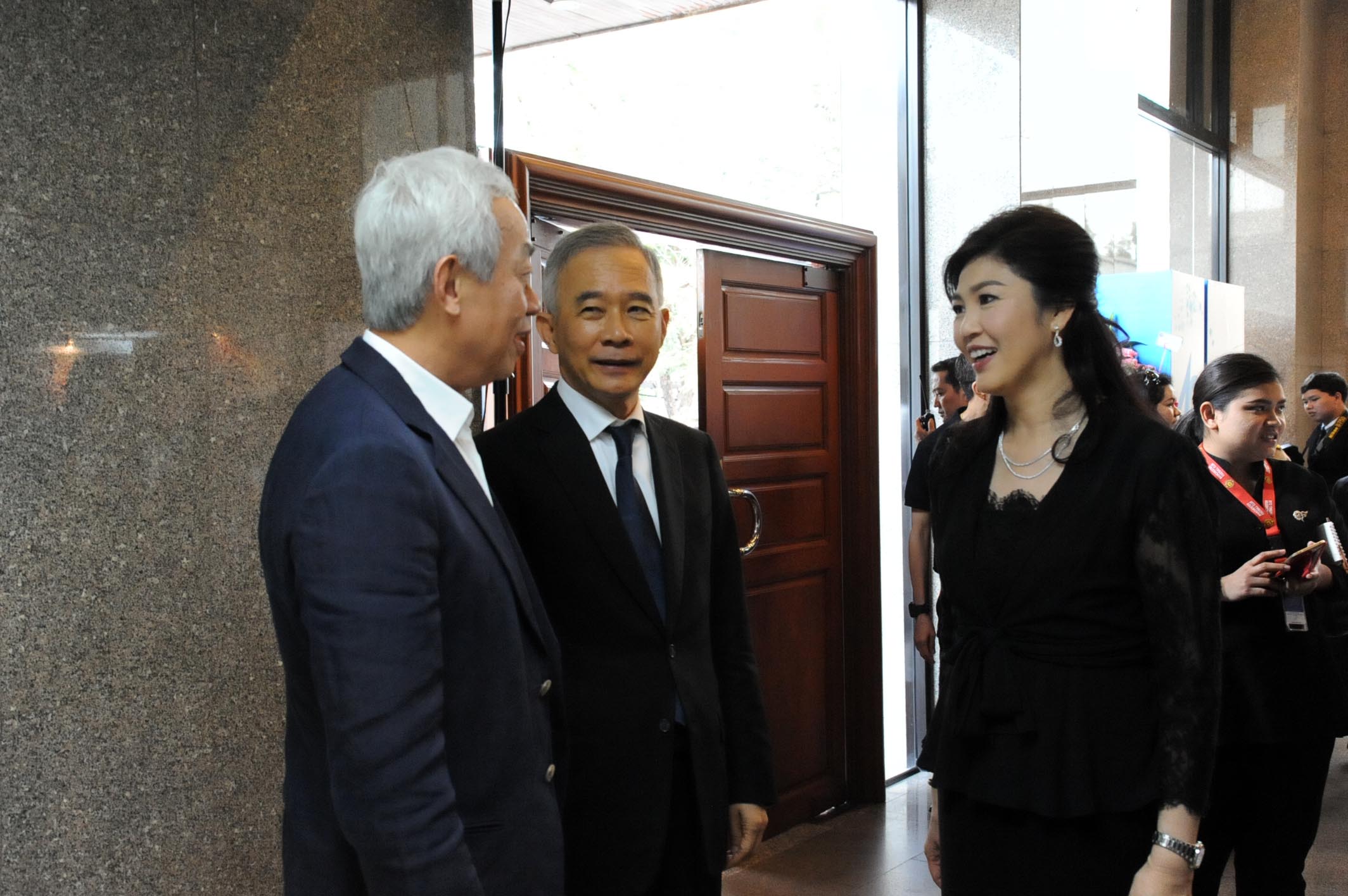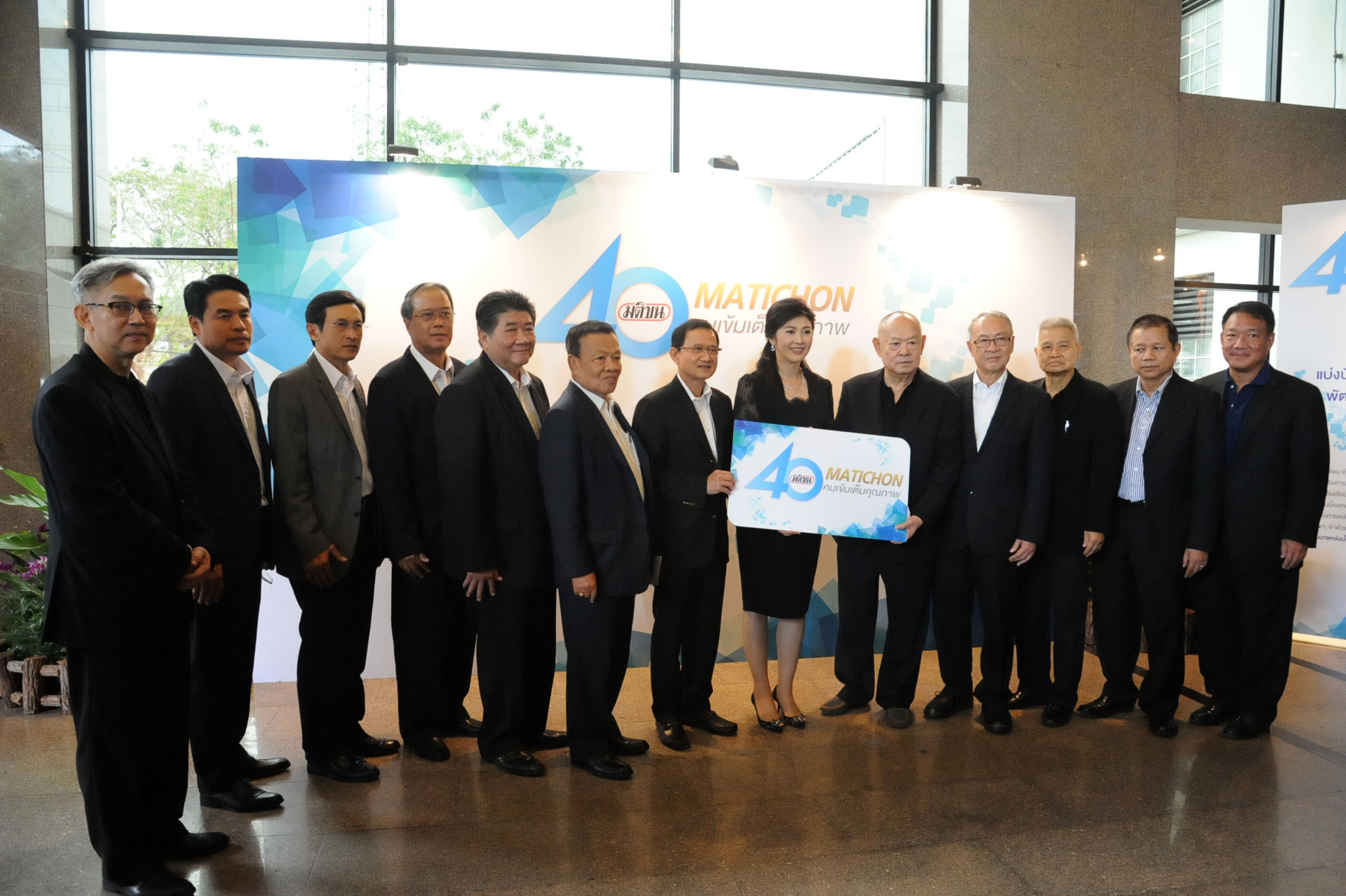 น.ส.ยิ่งลักษณ์ ชินวัตร, นายสมชาย วงศ์สวัสดิ์ อดีตนายกรัฐมนตรีและผู้บริหารพรรคเพื่อไทย นำแจกันดอกไม้อวยพร ครบรอบ 40 ปี หนังสือพิมพ์มติชน