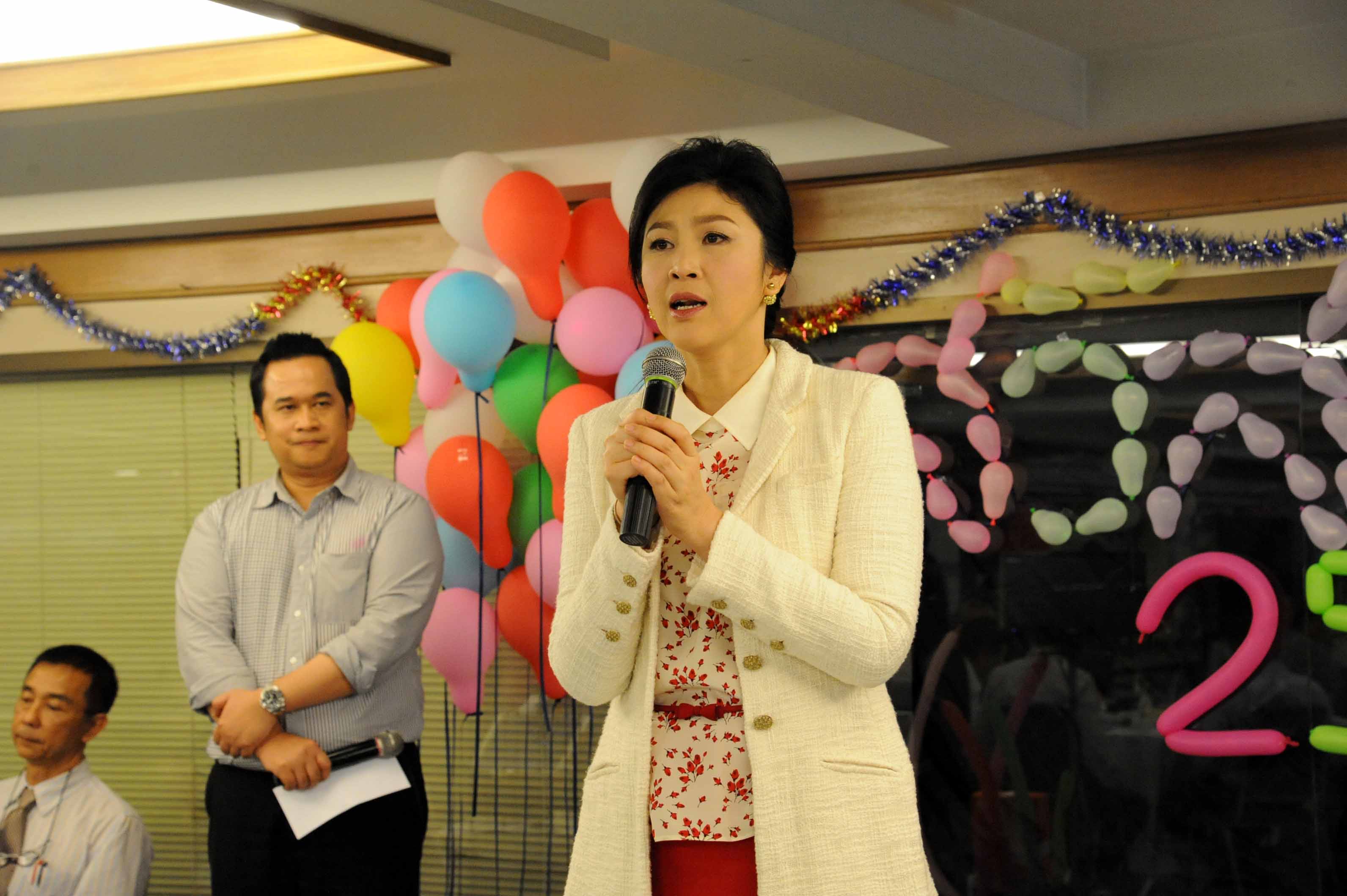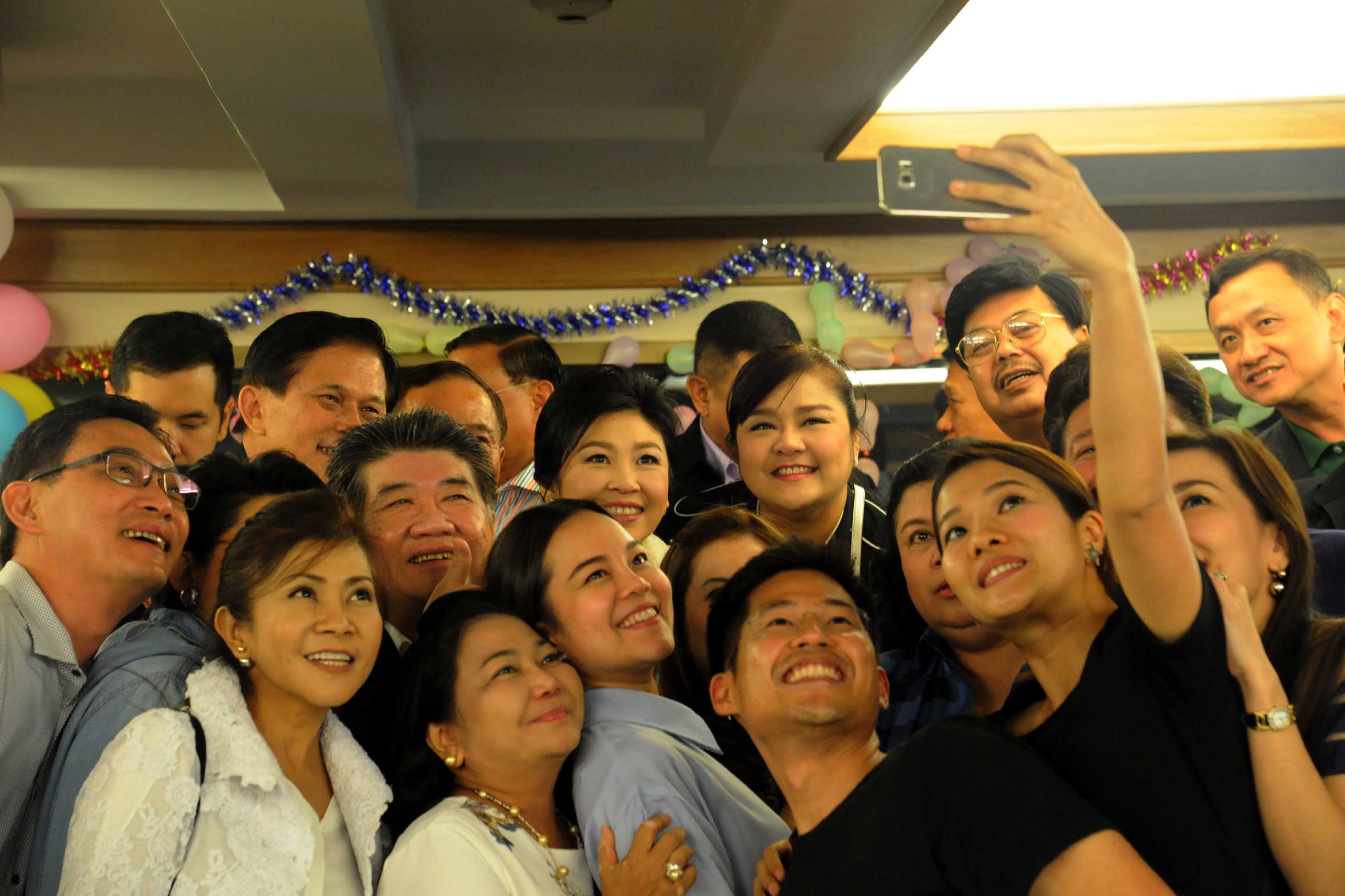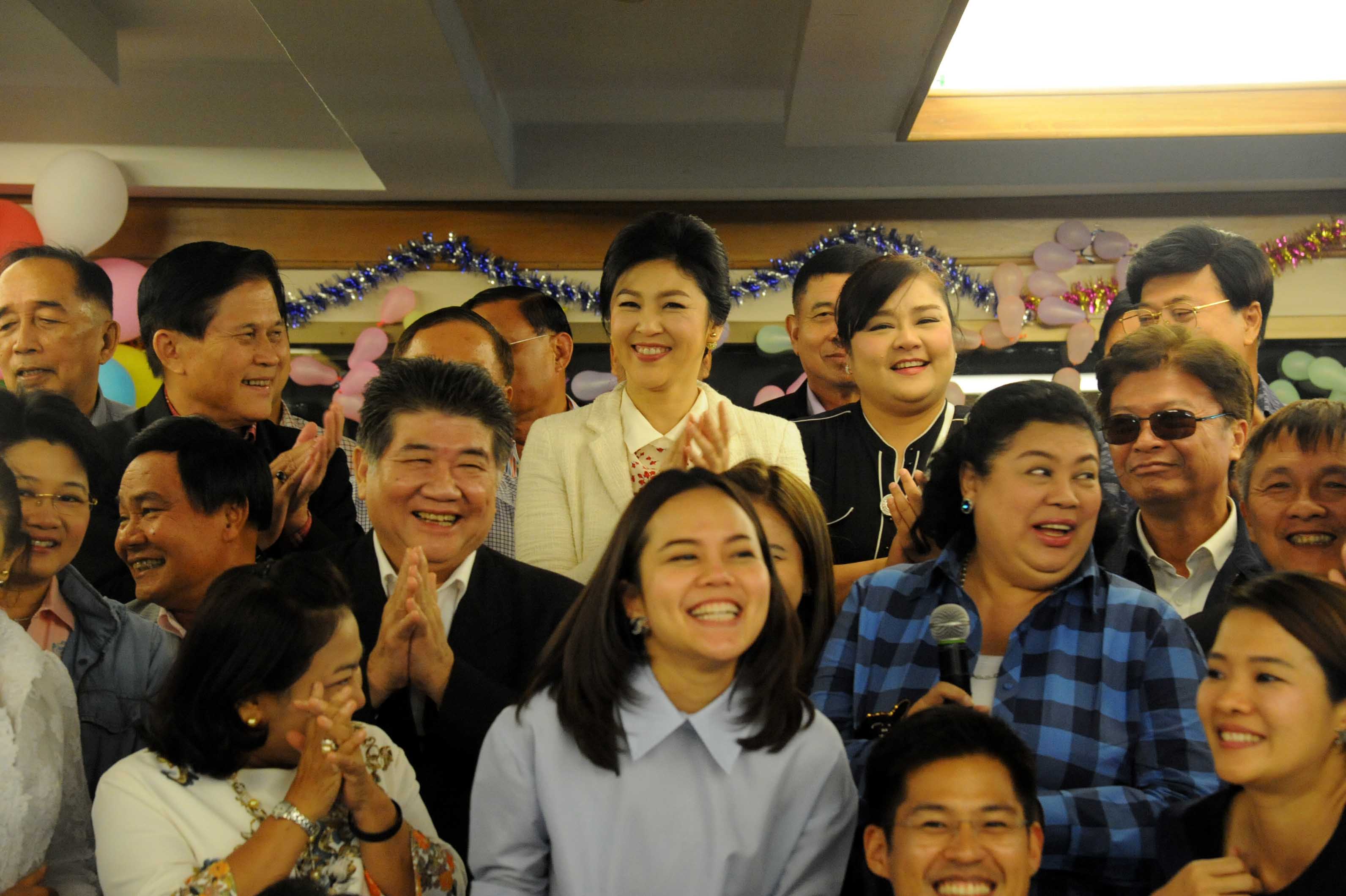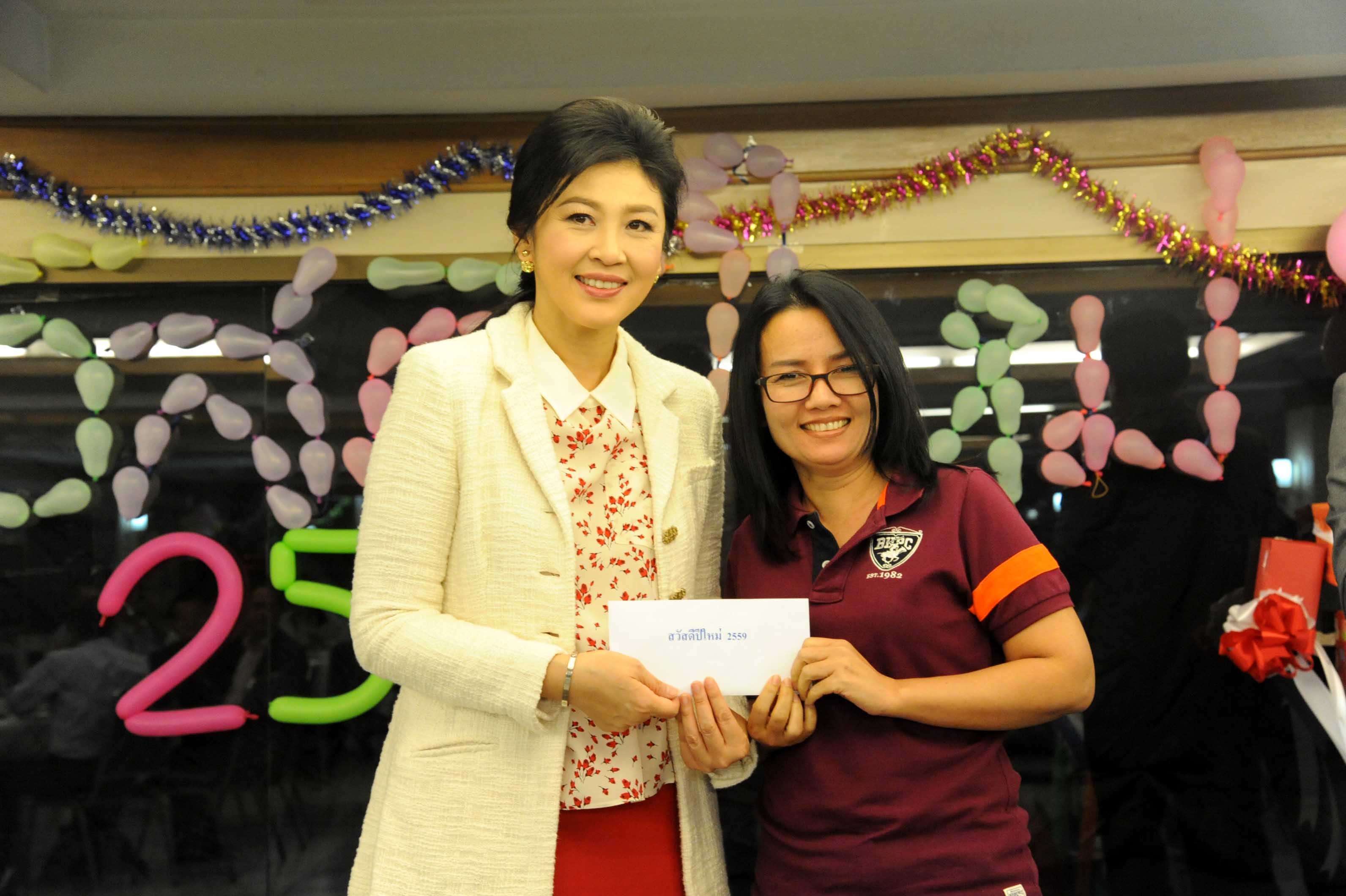น.ส.ยิ่งลักษณ์ ชินวัตร อดีตนายกรัฐมนตี และแกนนำพรรค ร่วมงานเลี้ยงสังสรรค์วันปีใหม่ 2559 เจ้าหน้าที่พรรคเพื่อไทย