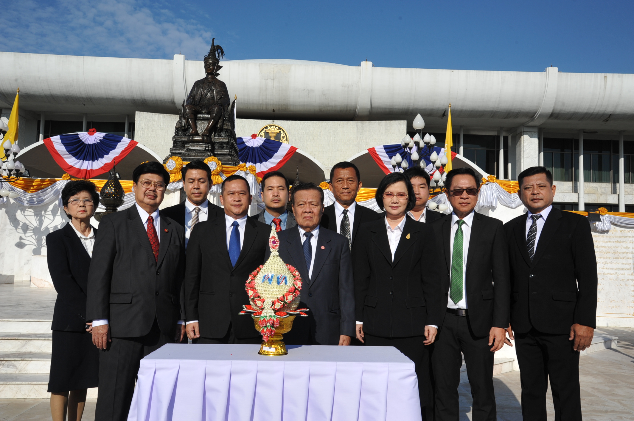 พล.ต.ท.วิโรจน์ เปาอินทร์ หัวหน้าพรรคเพื่อไทย และคณะ วางพานประดับพานพุ่มดอกไม้ ถวายบังคม พระบรมราชานุสาวรีย์ พระบาทสมเด็จพระปกเกล้าเจ้าอยู่หัว รัชกาลที่ 7 หน้าอาคารรัฐสภา 1 เนื่องในวันพระราชทานรัฐธรรมนูญแห่งราชอาณาจักรไทย วันที่ 10 ธันวาคม 2561