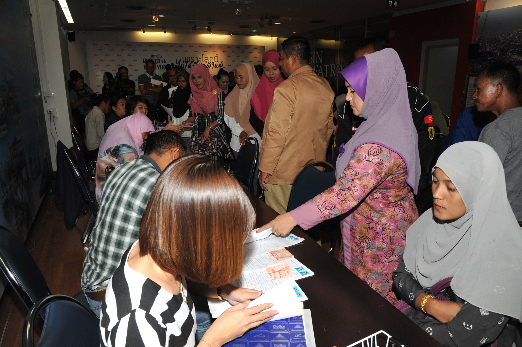 พี่น้องประชาชนชาวจังหวัด 3 ชายแดนภาคใต้ เดินทางมาสมัครสมาชิกพรรคเพื่อไทย ณ ที่ทำการพรรค ถนนเพชรบุรีตัดใหม่ กรุงเทพฯ