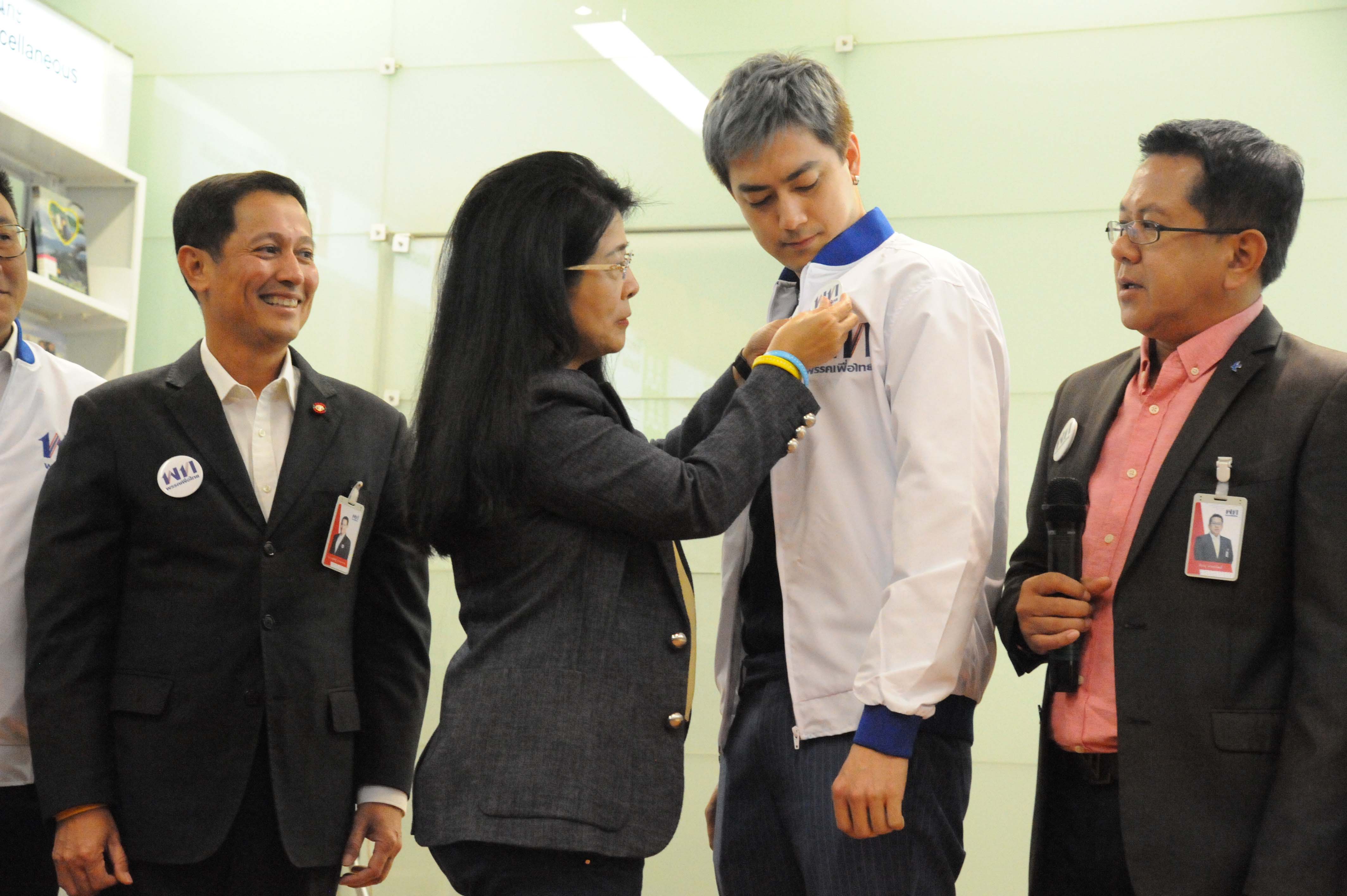ฟิล์ม์ รัฐภูมิ เข้าสมัครสมาชิกพรรคเพื่อไทย โดยมี คุณหญิงสุดารัตน์ เกยุราพันธุ์ ประธารยุทธศาสตร์, น.อ.อนุดิษฐ์ นาครทรรพ เลขาธิการพรรค ให้การต้อนรับ