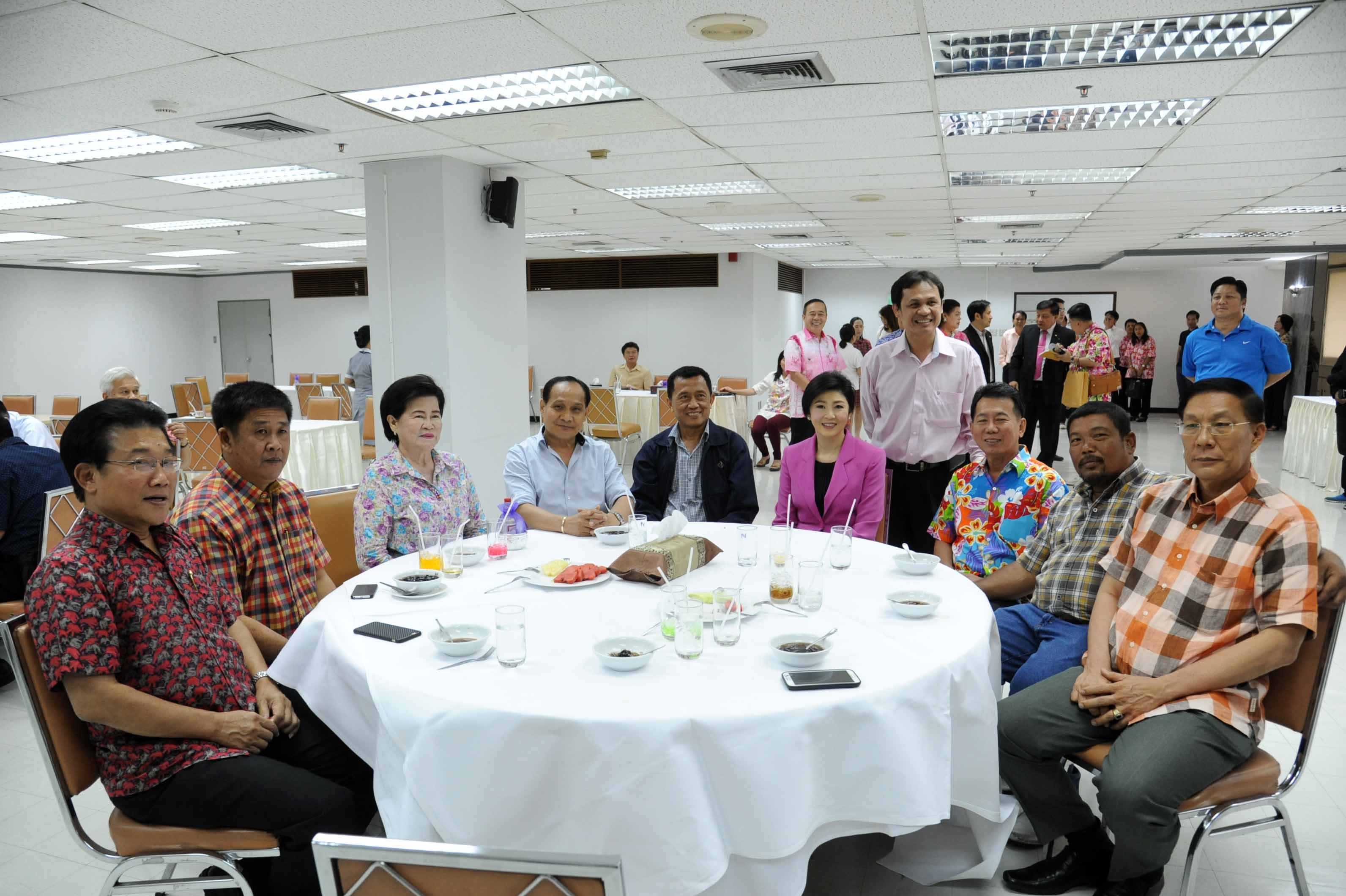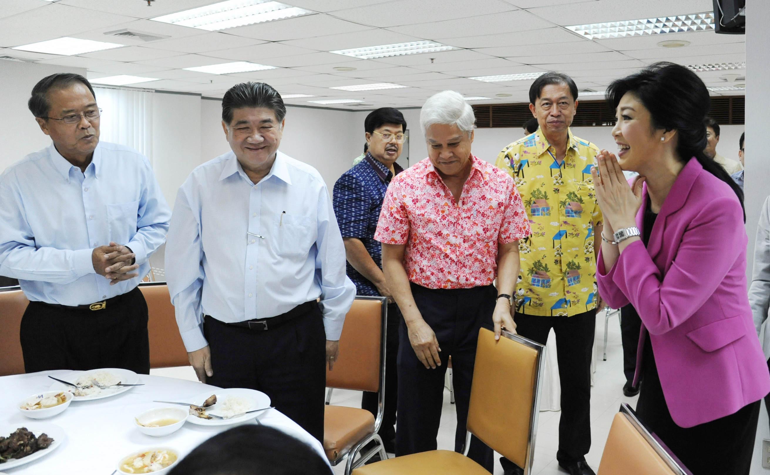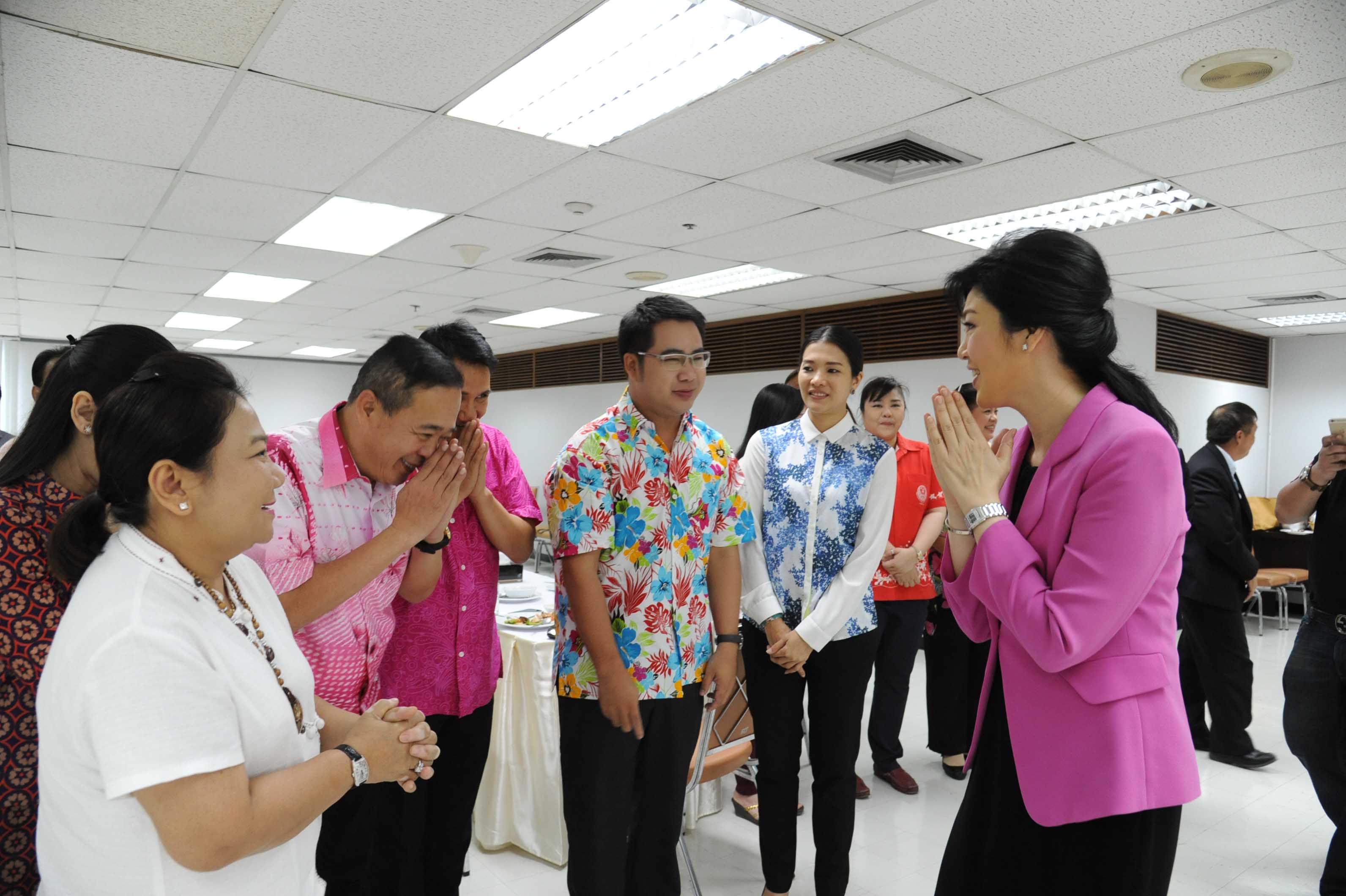 พิธีรดนํ้าดำหัว นายสมชาย วงศ์สวัสดิ์ อดีตนายกรัฐมนตรี, นายโภคิน พลกุล, นายยงยุทธ วิชัยดิษฐ์, พล.ต.ท.วิโรจน์ เปาอินทร์ หัวหน้าพรรคพรรคเพื่อไทย เนื่องในวันสงกรานต์ น.ส. ยิ่งลักษณ์ ชินวัตร อดีตนายกรัฐมนตรี มาร่วมรับประทานอาหารกลางวัน ณ ที่ทำการพรรค ถ.เพชรบุรีตัดใหม่