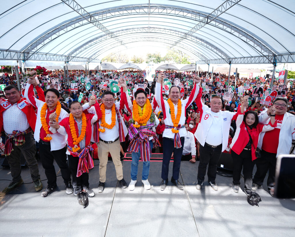 ขุนพลเพื่อไทยบุกเมืองพญาแล ‘จุลพันธ์’ ปูพรมปราศรัยตั้งเป้ากวาด สส.ชัยภูมิ ยกจังหวัด ประกาศใช้นโยบายสู้กระสุน ซื้อใจประชาชนในคูหา พร้อมถ่ายภาพทะเลดาวชัยภูมิร่วมผู้ฟังปราศรัย