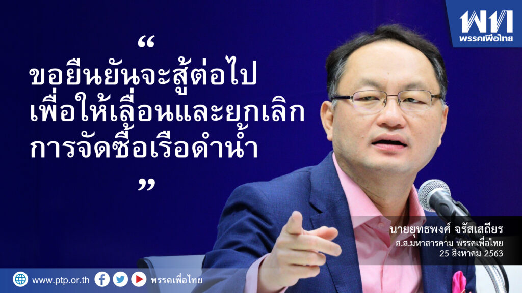 โฆษกพรรคเพื่อไทย เตือน รัฐบาล-กองทัพเรือ เดินหน้าซื้อเรือดำน้ำ ฟางเส้นสุดท้าย ประชาชนจะไม่ทน