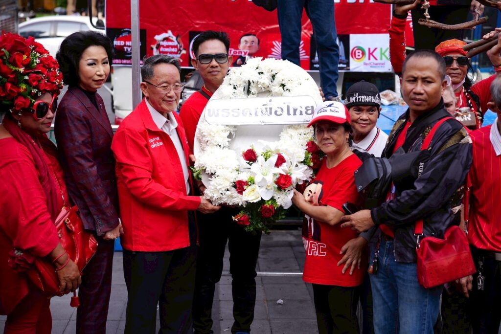 ตัวแทนพรรคเพื่อไทย ร่วมวางพวงหรีดรำลึก ‘15 ปี วีรชนคนเสื้อแดง 19 พฤษภาคม 2553’ ที่แยกราชประสงค์