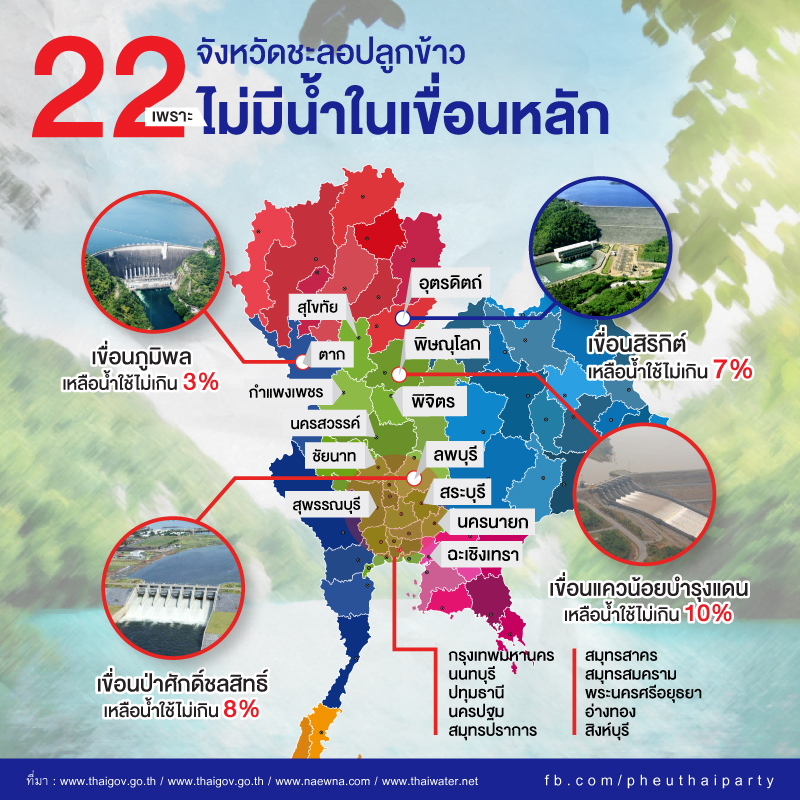 22 จังหวัดชะลอปลูกข้าว เพราะไม่มีน้ำในเขื่อนหลัก
