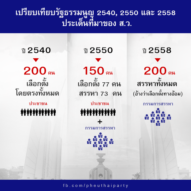 เปรียบเทียบรัฐธรรมนูญ 2540, 2550 และร่าง 2558