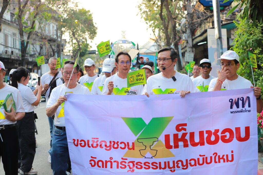 “เพื่อไทย” เดินรณรงค์ “เห็นชอบ” เปิดทางรัฐธรรมนูญใหม่ จาตุรนต์ชี้ รธน.60 ไม่เป็นประชาธิปไตย-จำกัดสิทธิประชาชน