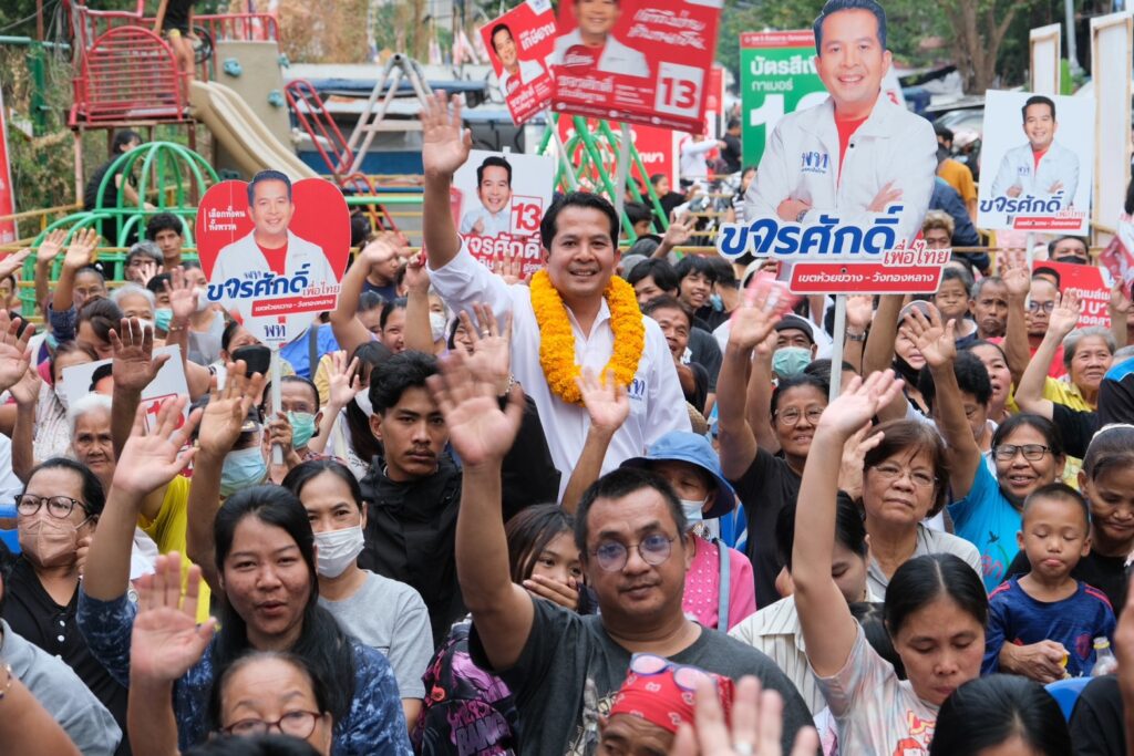 เวทีปราศรัยเพื่อไทย กทม. คึกคัก “ห้วยขวางทำได้” ทีมเพื่อไทยอ้อนขอคะแนน ประชาชนตอบรับนโยบายผู้สมัครอยู่พื้นที่