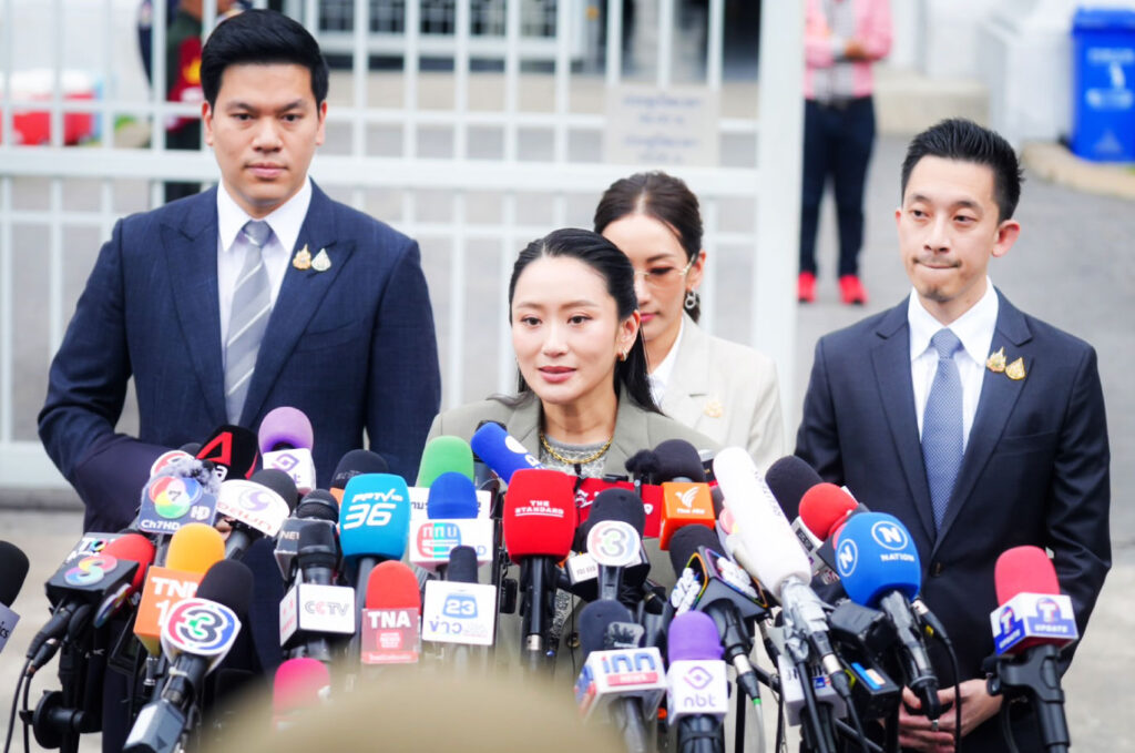 นางสาวแพทองธาร ชินวัตร อดีตนายกรัฐมนตรีและหัวหน้าพรรคเพื่อไทย กล่าวให้สัมภาษณ์สื่อมวลชนภายหลังร่วมรับฟังการไต่สวนคดี ดร.ทักษิณ ชินวัตร กรณีชั้น14 ที่ศาลฎีกา