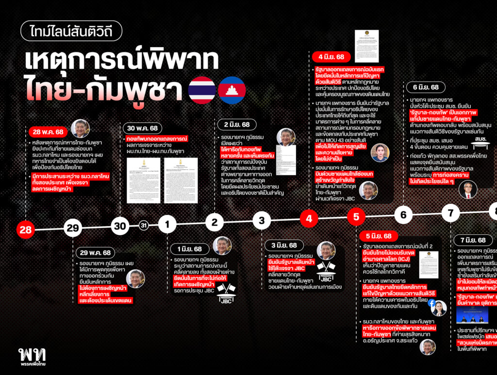 เปิด “ไทม์ไลน์สันติวิถี” เหตุการณ์พิพาทไทย-กัมพูชา 🇹🇭🇰🇭