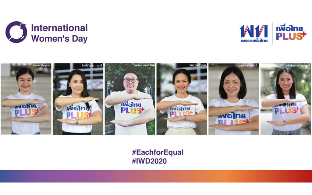 คนรุ่นใหม่เพื่อไทย ร่วมแคมเปญ EachForEqual เนื่องในวันสตรีสากล ชี้ความเท่าเทียมทางเพศและความเท่าเทียมในกติกา สร้างความเท่าเทียมให้กับประเทศได้